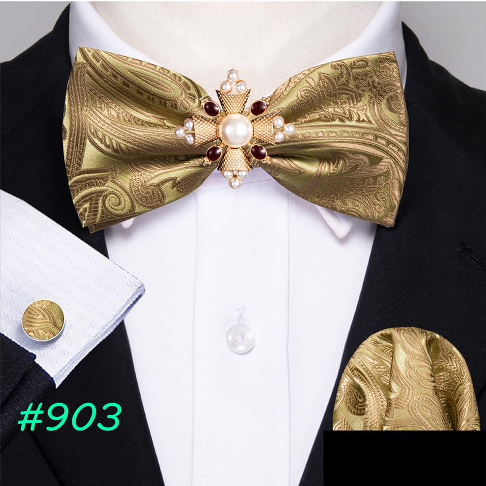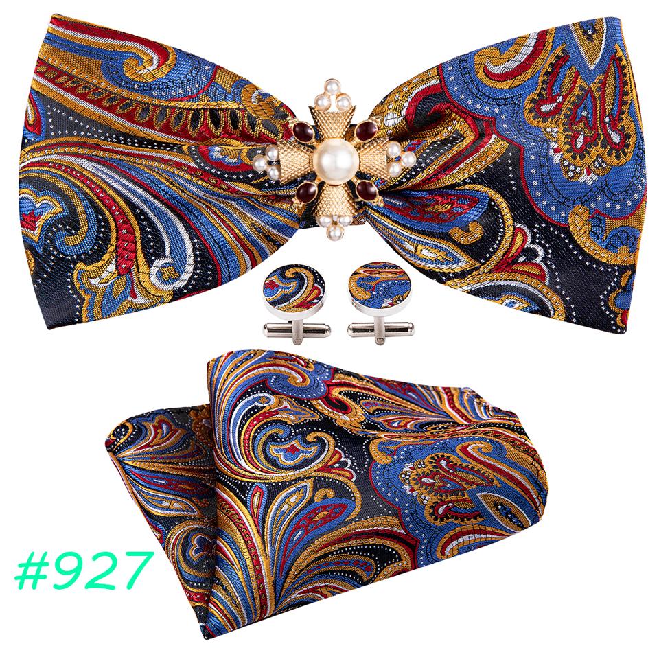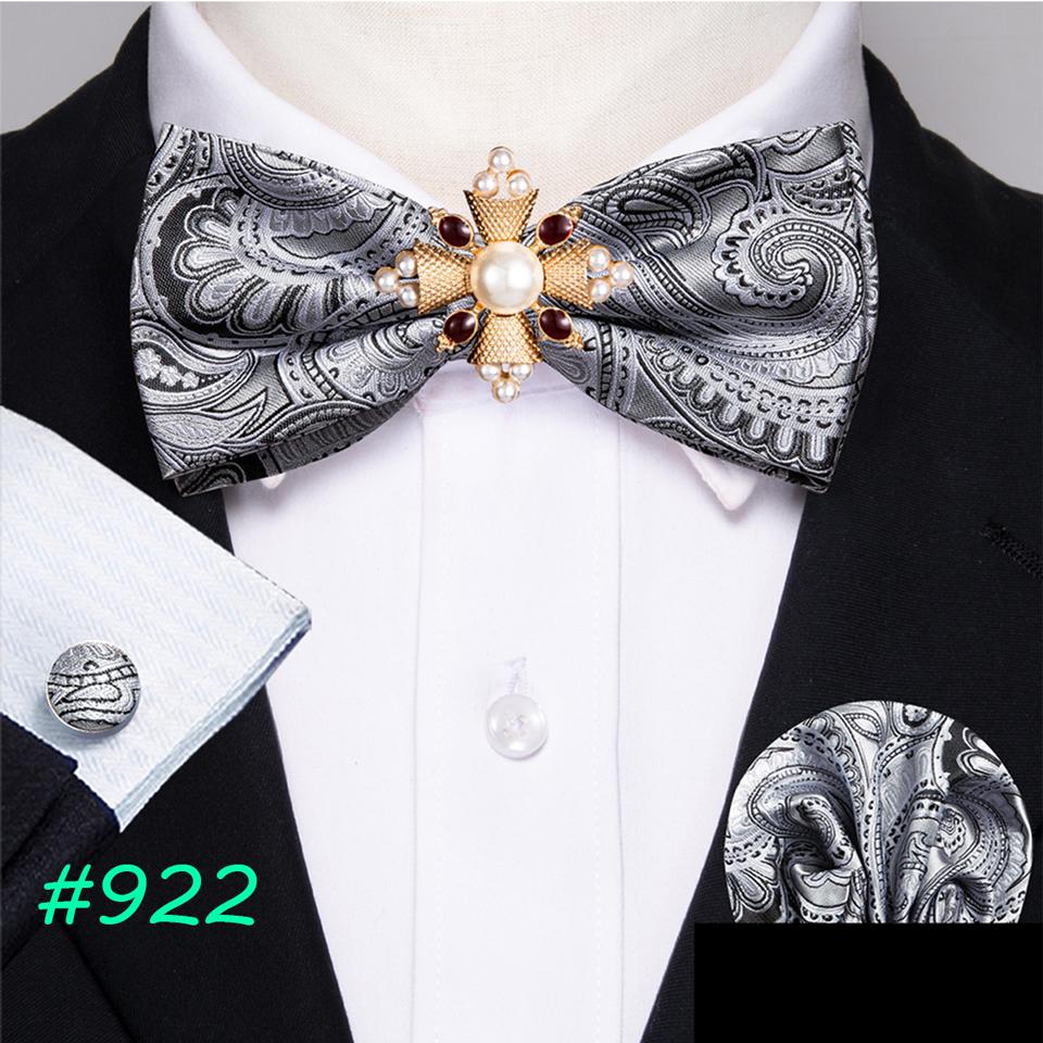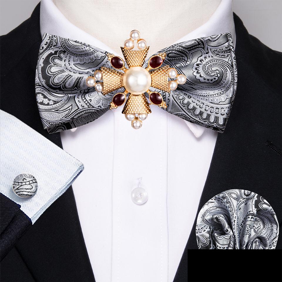 Barry.Wang Мужской галстук-бабочка с жемчужной брошью, шелковый галстук-бабочка с узором пейсли, носовые запонки для свадебных свиданий