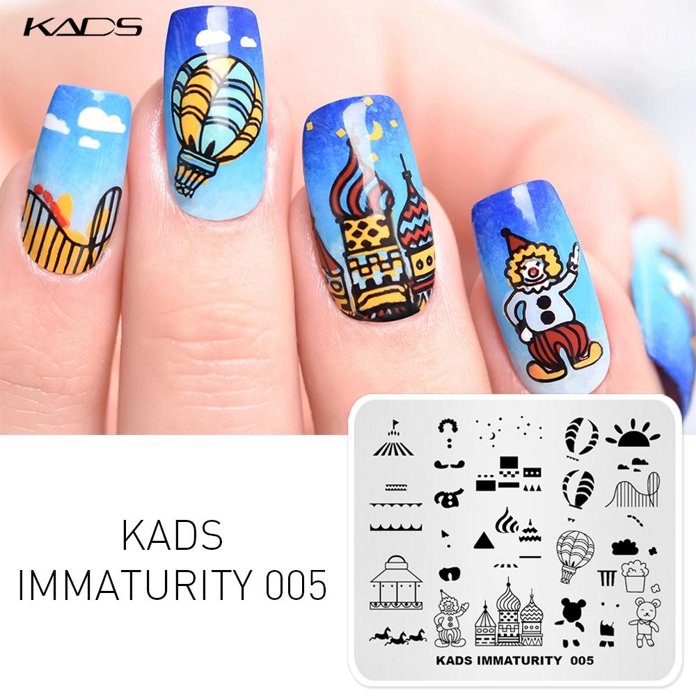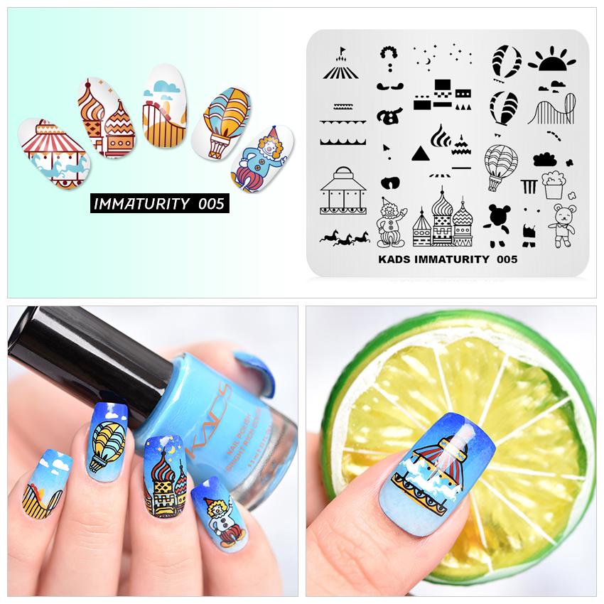 kads Незрелость 005 Пластины для штамповки ногтей Элемент парка развлечений Клоун Воздушный шар Нейл-арт Штамповая пластина Шаблон для маникюра своими руками
