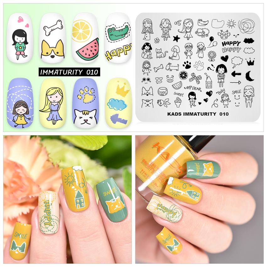 kads Незрелость 010 маленькие девочки животные фрукты дизайн ногтей штамповочные пластины шаблон штамп DIY маникюрные инструменты