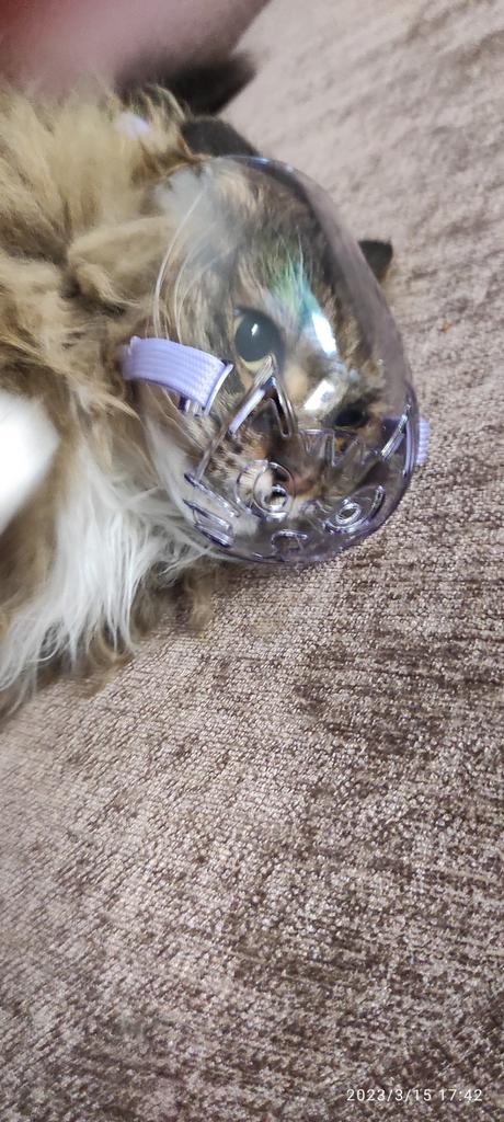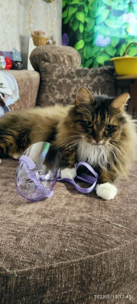 Прикольная штука, морда моего крупного кота влезла без проблем, только кот остался очень недоволен примеркой, подозревает, наверное, скорый маникюр и педикюр.