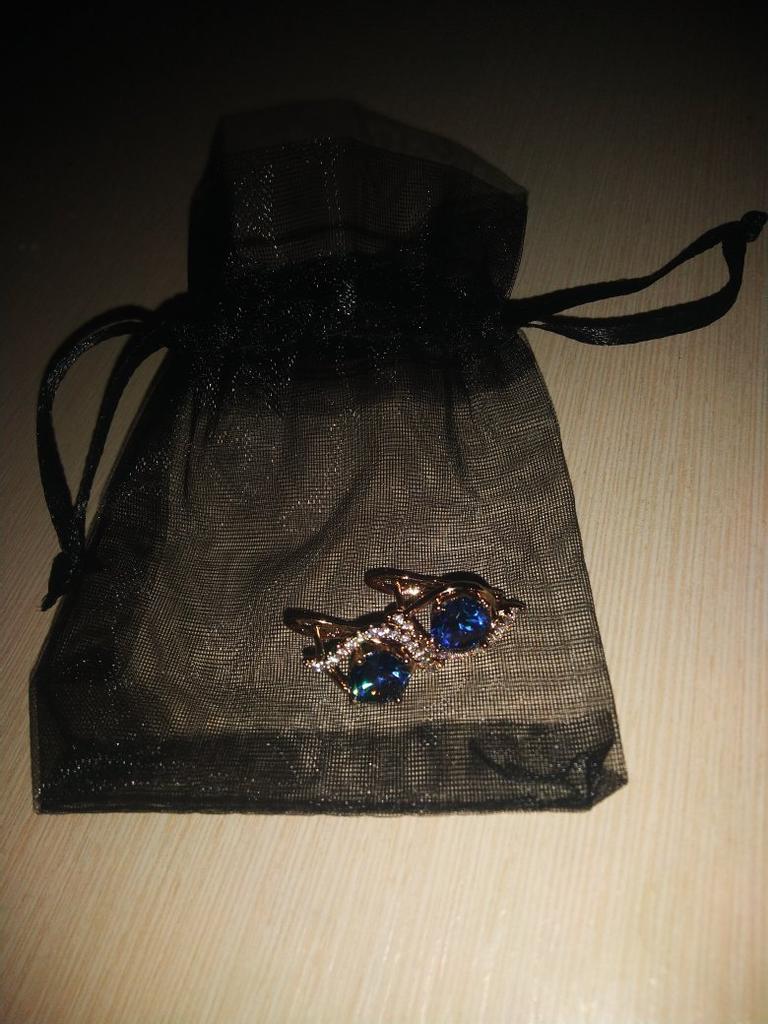 Серьги под золото с красиво сияющими камушками. Маленькие, на мою тонкую мочку идеально подошли. Заказ объединен в посылку с четырьмя другими, доставлен в Подмосковье за чуть больше, чем полтора месяца. Спасибо, Джум!