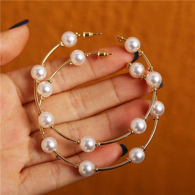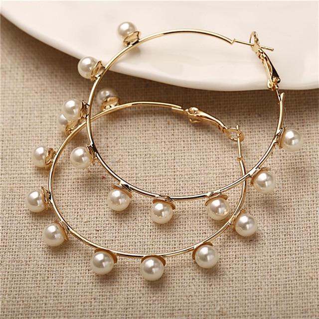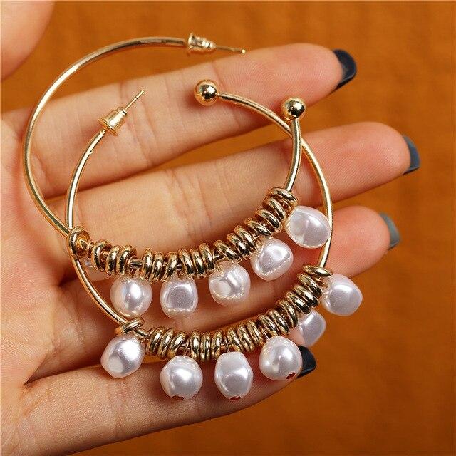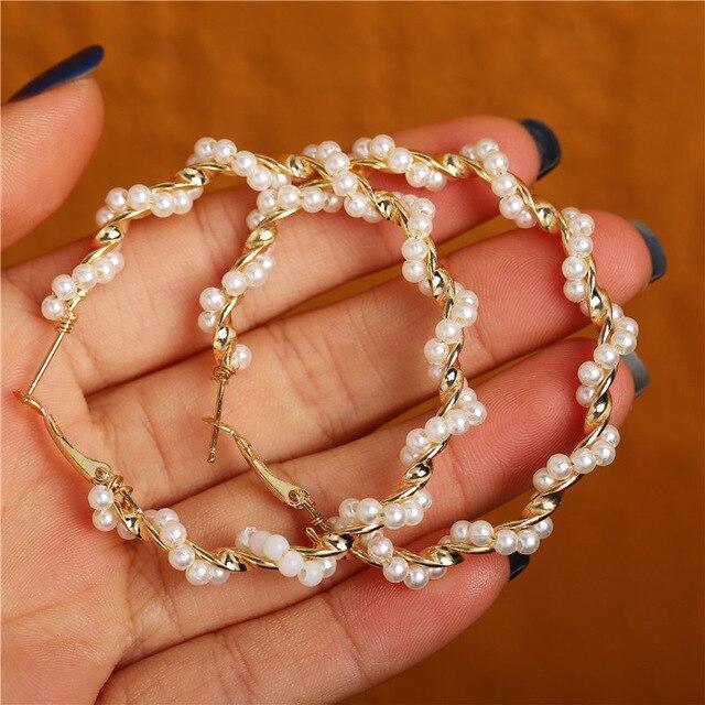17KM Винтажные серьги с жемчугом большого размера для женщин и девочек Brinco, большие серьги-кольца, круглые серьги, массивные геометрические модные украшения