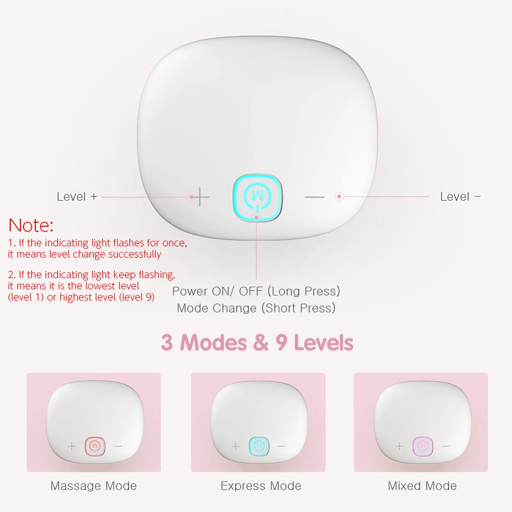 1. Рабочее время по умолчанию составляет 30 минут, после чего молокоотсос автоматически выключается или нажмутся кнопку питания, чтобы выключить питание.
