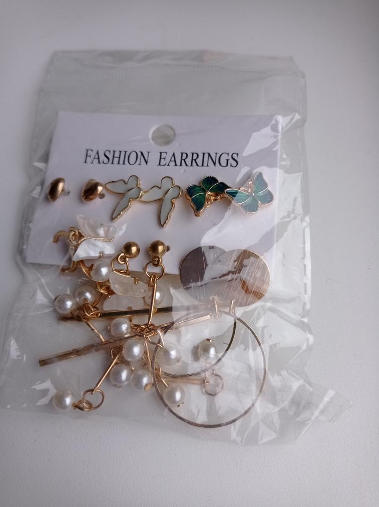 Комплект серёжек из 6 пар от 17km 17км известный бренд бижутерии и у них много всего интересного и трендового. Но особенно выгодно покупать такие комплекты - поскольку за небольшую цену вы получаете большое количество украшений, да ещё и актуальных 👌 Доставка заняла месяц. Пришли в пакетике на картонной подкладке. Всё серьги хорошие. Качество понравилось. Уши от них не болят, НО я хочу отметить то, что у меня уши вообще не проблемные и я ношу абсолютно любую бижутерию! Годы тренировок ушли на это 😆 Извините, что нет детальных фото, но если будет необходимость - добавлю на днях❤️ 4 пары сережек гвоздиков с металлическими заглушками. И 2 пары сережки кольца. Одни с бабочками, а вторые волнистые кольца бОльшего диаметра. Каждая пара мне понравилась и все они уместны в повседневной жизни и найдут себе применение, так сказать😄 Замечу, что все сережки из набора очень лёгкие, практически невесомые. Если вдруг случайно выпадет из уха, то сразу можете и не заметить🤷 Ношу их только пару дней. Возможно, потемнеют, но пока непонятно. Я осталась довольна. Рекомендую всем любительницам бижутерии👌