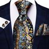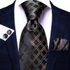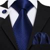 Hi-Tie Мужской синий галстук, высококачественный клетчатый галстук, носовой платок, запонки, набор для делового офиса для мужчин