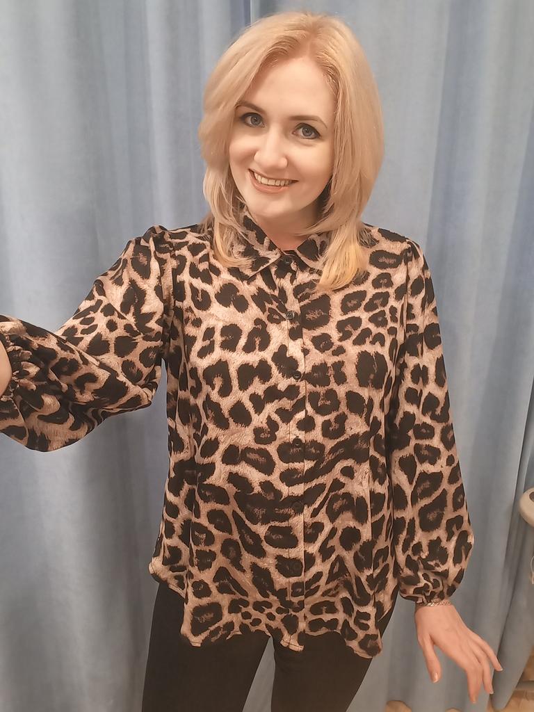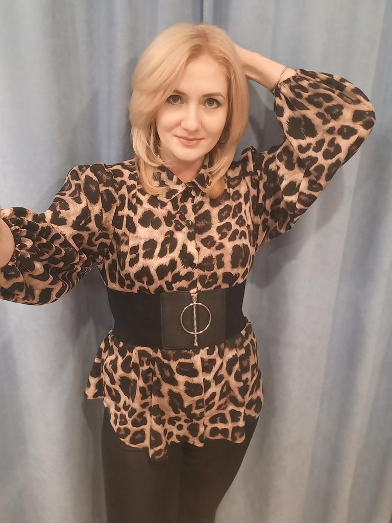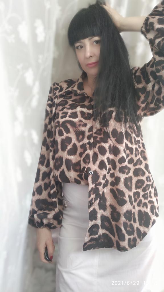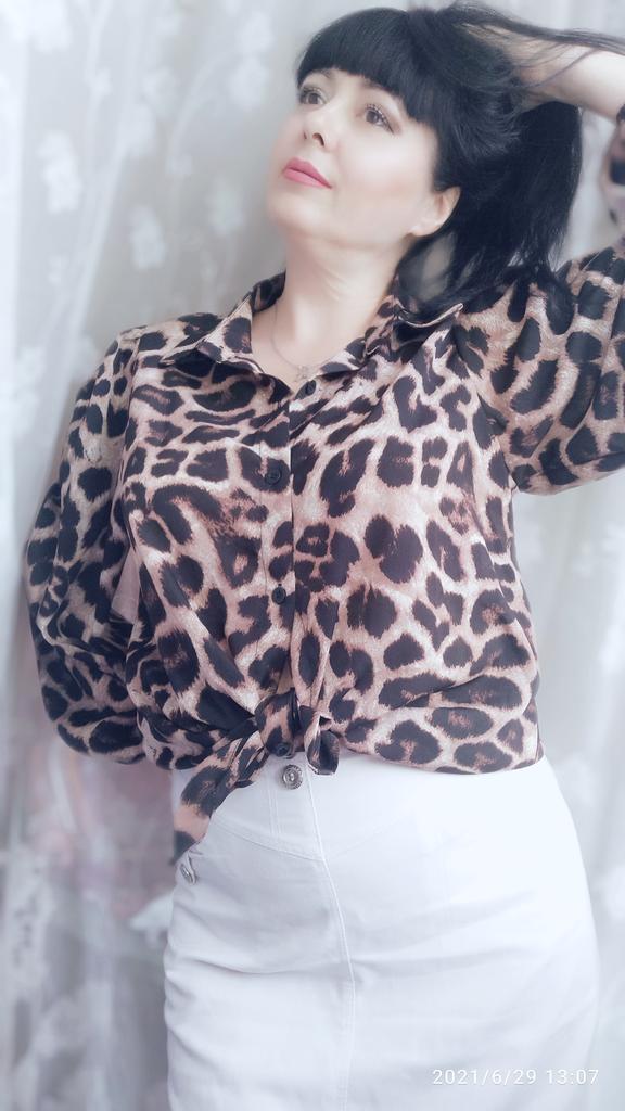 Женская блуза с леопардовым принтом 👋Всем привет! ✨Сегодня обзор на блузу 👍Блуза очень понравилась! ✨Заказала размер L ✨Мой размер L, M ✨ 46-48 ✨Рост: 167 ✨Мои параметры: 🧨Ог. 98 🧨От. 78 🧨Об. 98 ✨Блуза, как я и хотела, села свободненько, фасон предпологает... ✨Рукав фонарик ✨Ткань: полиэстер ✨Ткань не тянется ✨Представлена в трех цветовых оттенках ✨У меня: хаки ✨Ткань очень приятная к телу ✨Пошив качественный 👍Блуза клёвая! ✨Носить можно под что угодно: юбка брюки, шорты... ✨Можно экспериментировать ✨Можно заправить, можно на выпуск, можно завязать на узелок, смотрите фото... 👍 Мне все понравилось! 💕Спасибо joom! 👍Девчонки, к покупке рекомендую! 💕Буду рада если кому-то помогла определиться с выбором и размером! 🌹Удачных покупок на joom!