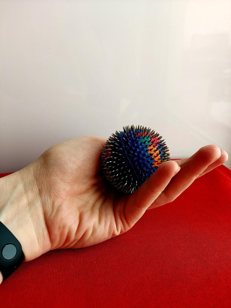 С аппликаторами Ляпко знакома уже лет 20 (в свое время приобрели коврик и широкий валик). Они отлично помогают при переломах, растяжениях и иных травмах опорно-двигательного аппарата. Спасают при онемениях пальцев и неврологических нарушениях. Ставлю пять не глядя, потому что имею долгий опыт использования. Шарик приобрела для массажа подушечек пальцев. Аппликатор был упакован в коробку из плотного картона. Прибыл в течение двух недель. Имеется инструкция на нескольких языках, в том числе и на русском.