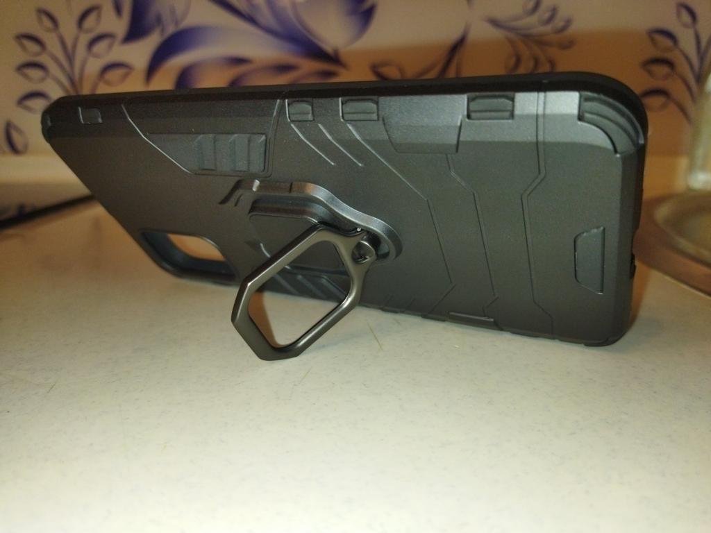 Чехол сделан из гибкого но прочного пластика, в качестве амортизатора используется резина. На задней стенке расположено упорное кольцо. Можно поставить телефон для просмотра программ. Доступ к нопкам управления, к разьемам питания, головного телефона и др. местам хороший, чехол не мешает. Изменился конечно и внешний вид. Самое основное - не скользит в руке, удобно держать.