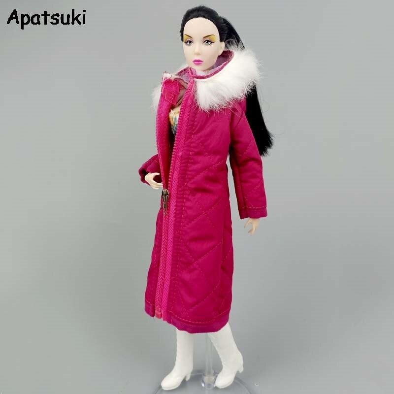 Ярко-розовое зимнее длинное пальто с капюшоном для куклы Барби, наряды, одежда, парка для куклы 1/6 BJD, куртка, кукла 1:6, аксессуары для детей, игрушки