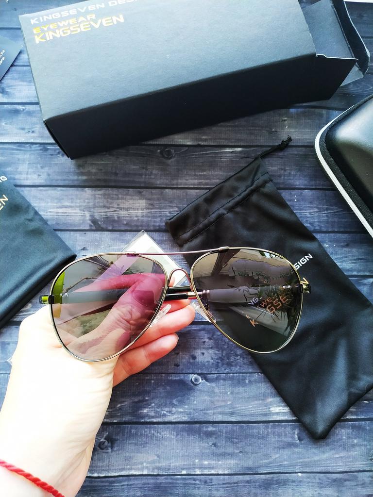 Симпатичные солнечные очки от #KINGSEVEN Эти ребята знают толк в аксессуарах, я думаю, что все, кто любит онлайн шоппинг, знакомы с ними🙂 Всегда отличное качество, широкий ассортимент и прекрасный сервис - вот за что мы любим этот магазин. Очередная покупка не стала исключением, очки пришли в Варшаву, Польша, за две недели, забрал посылку в постомате возле своего дома. Как всегда, богатая комплектация - кожаный чехол, мешочек для хранения и салфетка с логотипом бренда, отвёртка, запасные носоупоры, а также тест на поляризацию. Упаковка - прочная картонная коробка, предсказуемо, всё доставлено в целости и сохранности. Сами очки выполнены предельно аккуратно, лёгкие, но совсем не хлипкие, производитель не пожалел металла на оправу🙂 Заушины из пластика, имеются силиконовые вставки с логотипом бренда по бокам. Стекла с градиентом, темнее вверху и светлее внизу, в очках действительно, очень комфортно в солнечную погоду. Также они прекрасно дополнят любой образ, мы выбрали такой вот универсальный, классический дизайн. У продавца есть целых семь вариантов цветовых сочетаний стёкол и оправы, на любой вкус. Заказ оставил только самые приятные впечатления, с удовольствием могу рекомендовать к приобретению!
