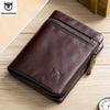 BULLCAPTAIN Короткий кошелек на молнии с тройной пряжкой, мужской кошелек из коровьей кожи, кошелек для монет, сумка для денег, держатель для визитных карточек, RFID-держатель