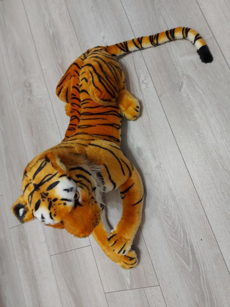 Сам тигр красив, качество конечно хорошее.Мягкий, приятный.Вот только размер меньше, очень обидно.Не знаю как там делают замеры.Ведь от размера зависит и цена.Я думаю должны замерять туловище.Я заказала 85 см, меряла вытянув лапы и так не сходиться , тогда и хвост надо мерять.Вообщем растроена.