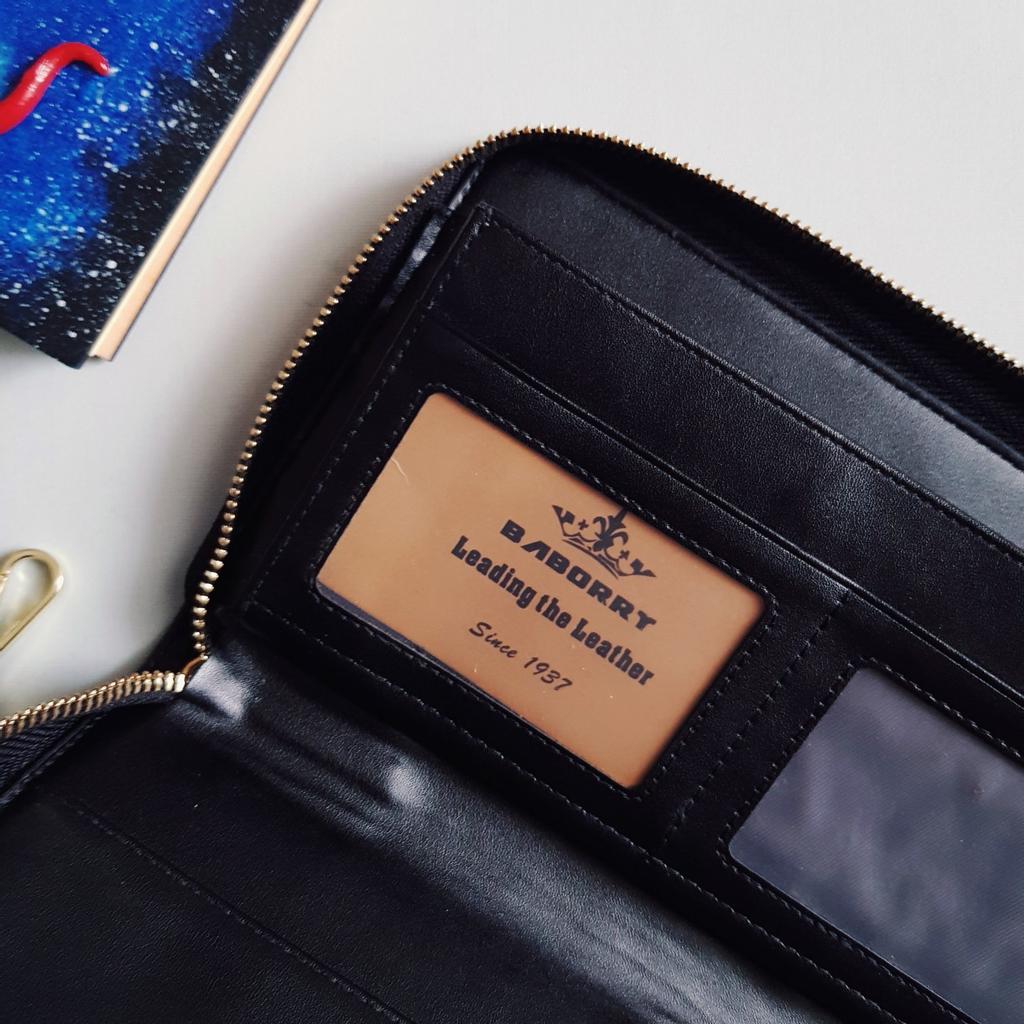 Вместительный мужской кошелек/барсетка от Baborry. Ну ооочень большой! Даже те девочки, которые любят мужские аксессуары, и никогда не прочь отжать у мужа обновку, не оценят размеры. Этот кошель слишком брутален. 22×11 см. И никаких украшательств. Дизайн лаконичный, простой, даже немного нарочито грубый. Покупкой и я и муж в общем-то довольны. Единственный момент - молния в золотом цвете чуть смущает, но это от вкуса зависит. Пошив и качество кожзама гуд. Как я уже сказала, кошелёк застегивается на молнию. Есть карман на кнопке снаружи, петля на карабине. Внутри один большой отсек под документы, много кармашков и отсеков для пластиковых карт. На выбор три расцветки. Материал - плотный матовый ПУ. Неприятного запаха её было. Могу рекомендовать, опять же если цвет фурнитуры нравится. У меня все.