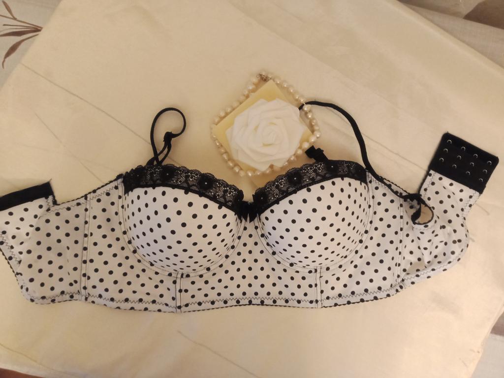 Бюстгалтер подошёл по размеру!Красивый ,качество неплохое за эти деньги,недостатков не обнаружила.Балконет,есть небольшой пуш-ап.Боюсь косточки будут вылезать((но посмотрим... Мне лично неудобно застёгивать его самой,получается на верхний крючок только .Никогда не застегивала лифчики спереди и не перекручивала потом( как видела многие делают),а здесь придется:) Ну ничего,как будет носиться ,напишу позже... Спасибо Джум и продавцу естественно. Немного "кусается" и низ заворачивается,даже не знаю,буду ли носить,а так вещь симпатичная и без брака.