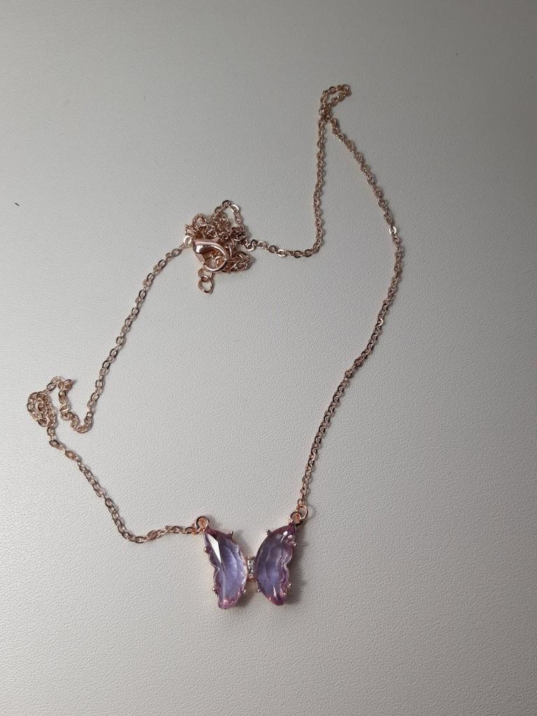 Кристаллическое прозрачное колье-колье с подвеской в виде бабочки
