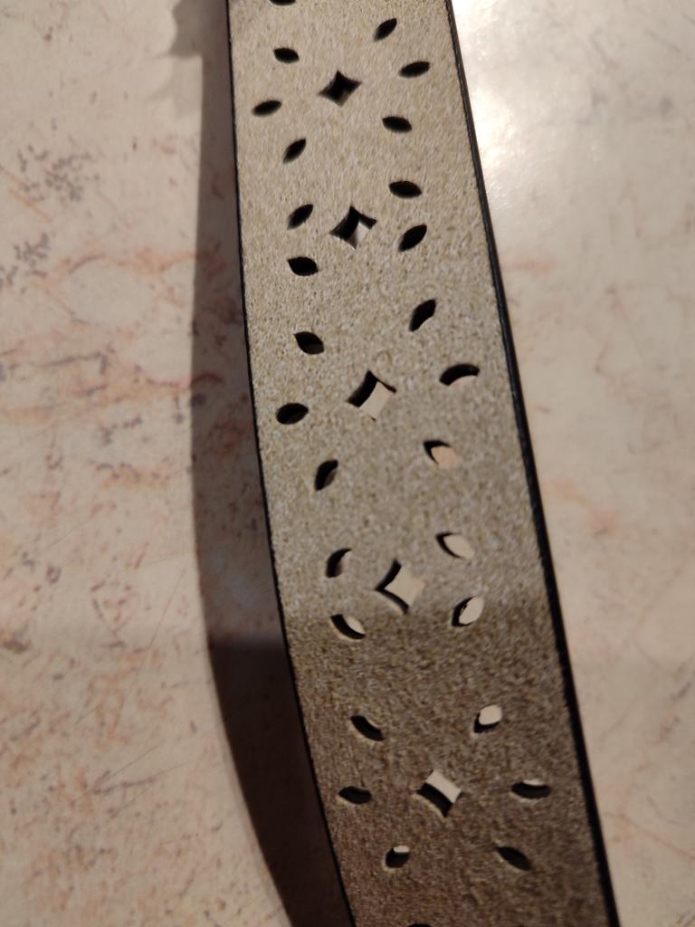 Народ, всем приветики🤗🤗🤗 Получила ремень, эффекта - "Ухтышки" не произошло, но и разочарования тоже не получила. На внешний вид достаточно приемлемый, аккуратно сделан, упакован был хорошо, химозный запах отсутствовал. Очень порадовал тот факт, что перфорация (рисунок) по всей длине ремня, не нужно задумываться и заморачиваться на счёт дополнительных дырок. ☝👍👌 Не знаю как у вас, а у меня всегда с ремнями такая беда - нужно "дыромашки" доп. делать. 😂😉 Вобщем-то могу рекомендовать к заказу. Всем хороших покупочек на ДЖУМ. 😊 Чуть не забыла - длина ремня 115 см., а ширина 3 см. Ширина застёжки 4 см. Для меня такие размеры в самый раз. Не нужно ничего укорачивать 🙃 Опять же в небольшие петельки брюк, джинс, юбок просовывается отлично и в то же время не болтается. ☝👌👍❗