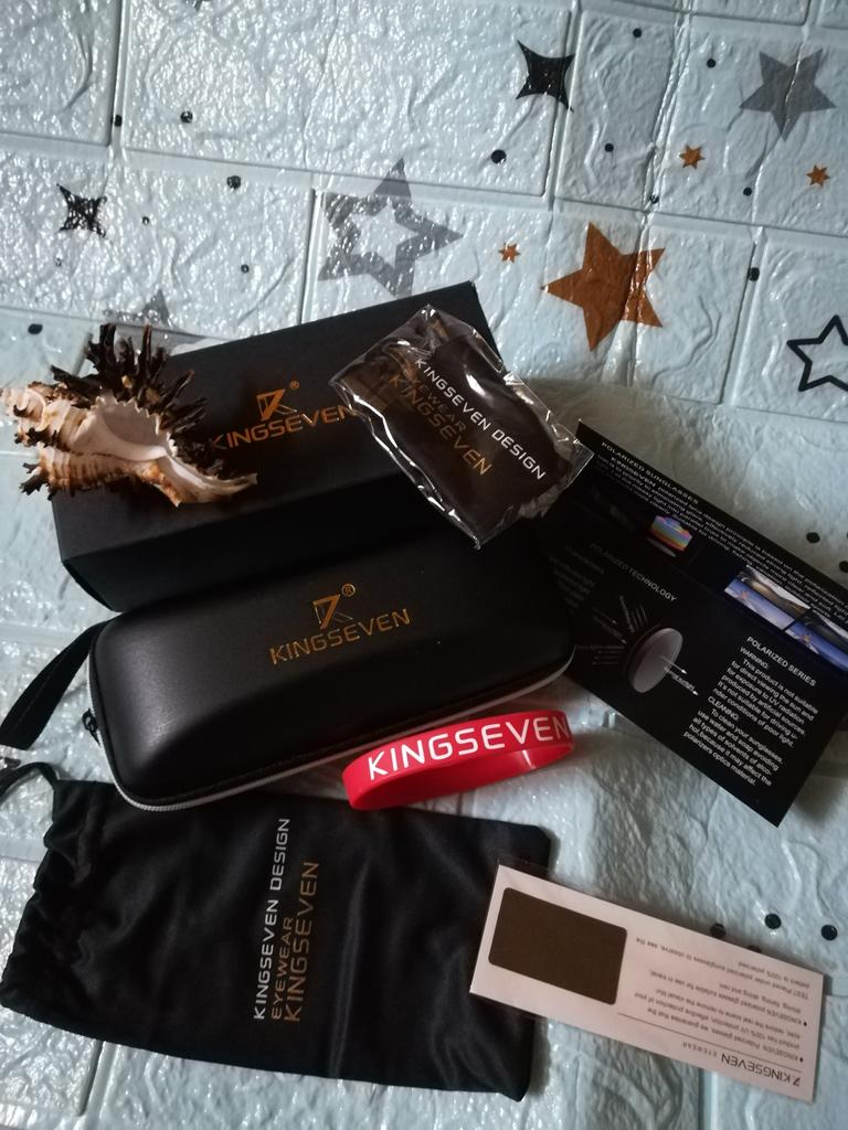 🤗🤗🤗 ВСЕМ ПРИВЕТ. 🙌🙌🙌🙌🙌. Заказ шёл в сборной посылке 1,5 месяца, в заказе поляризованные солнцезащитные очки от известного бренда,,, KINGSEVEN,,,. Винтажные. 👍👍Пришли в отличной упаковке в коробке, далее коробка чёрного цвета с надписью бренда. В комплект входит : 1) чехол чёрного цвета на замке, 2)сами очки в прозрачном зип пакете с этикеткой, 3)тканевый чехол на шнурке, 4)тест на качество товара, 5)буклет с инструкцией, 6) тряпочка для протирки стёкол, 7) силиконовый браслет красного цвета. И на всех этих 7 предметах стоит брендовый логотип. Вот это реально очень приятная Шикарная покупка. 👍👍👏👏Сами очки поляризационный, снимают блики встречных машин на дороге, также полная защита зрения от слепящего солнца и добавляют контрастность изображения. Мне очень нравятся, качество изделия отличное, сделаны на совесть не придраться, всё на уровне. 👍👏У продавца несколько разных таких очков, разные стёкла, разный цвет металла можно выбрать и на свой вкус. Я конечно же рекомендую двумя руками и продавца и товар. ВСЕМ ПРИЯТНЫХ ПОКУПОК. 👍👍👏👏👌🙌🤗🤗🤗 . Кому нужна скидка на 5% ,вот мой промокод. X26C4YCV15