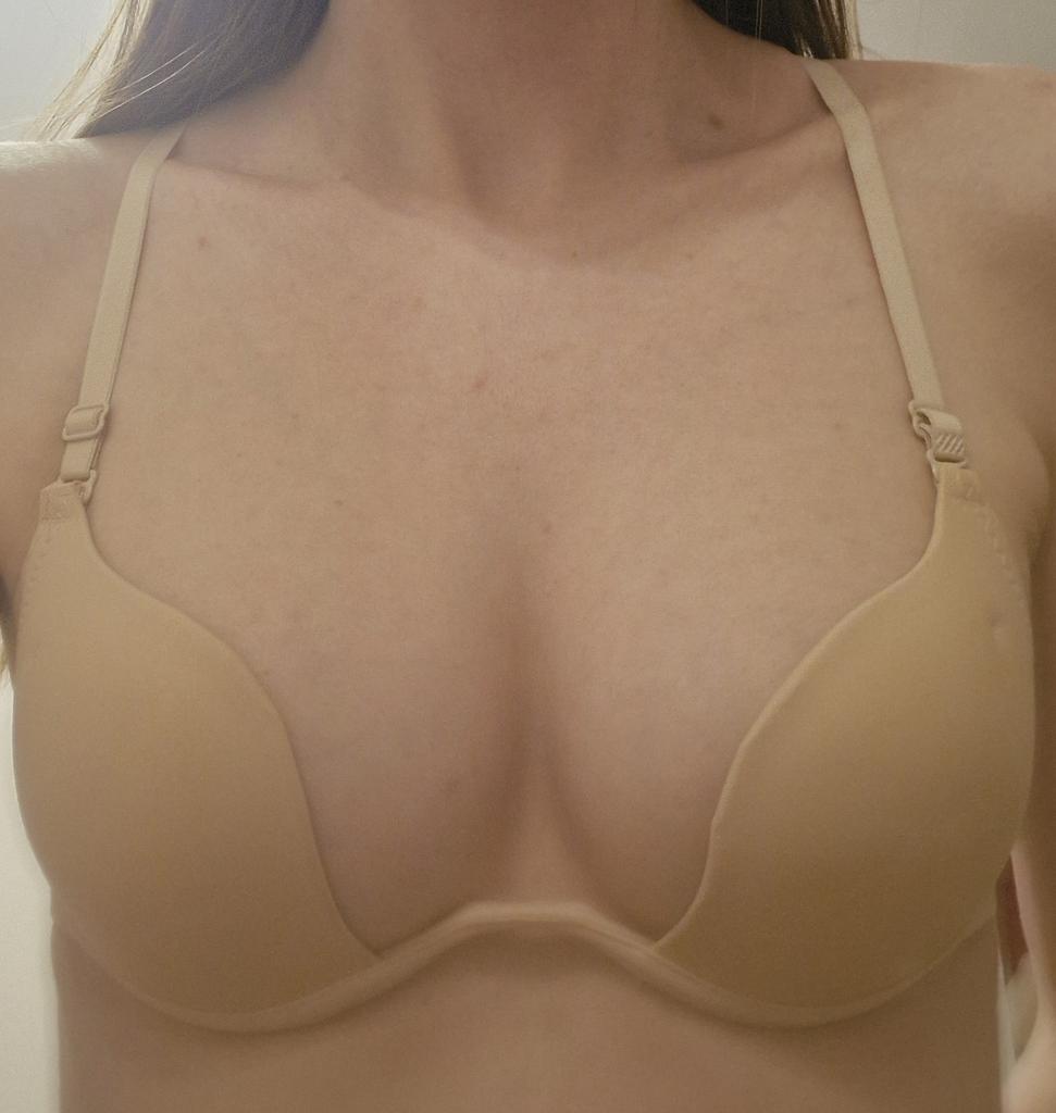 Бежевый бюстгальтер с пуш-ап эффектом ✅Хорошое качество, удобный, мягкий. ✅На фото размер 32/70 B, я худенькая, мне подошло. ✅Взяла чтоб носить под топы, платья. ✅Хорошо держится и не сползает. Рекомендую! Закажу ещё в другом цвете.