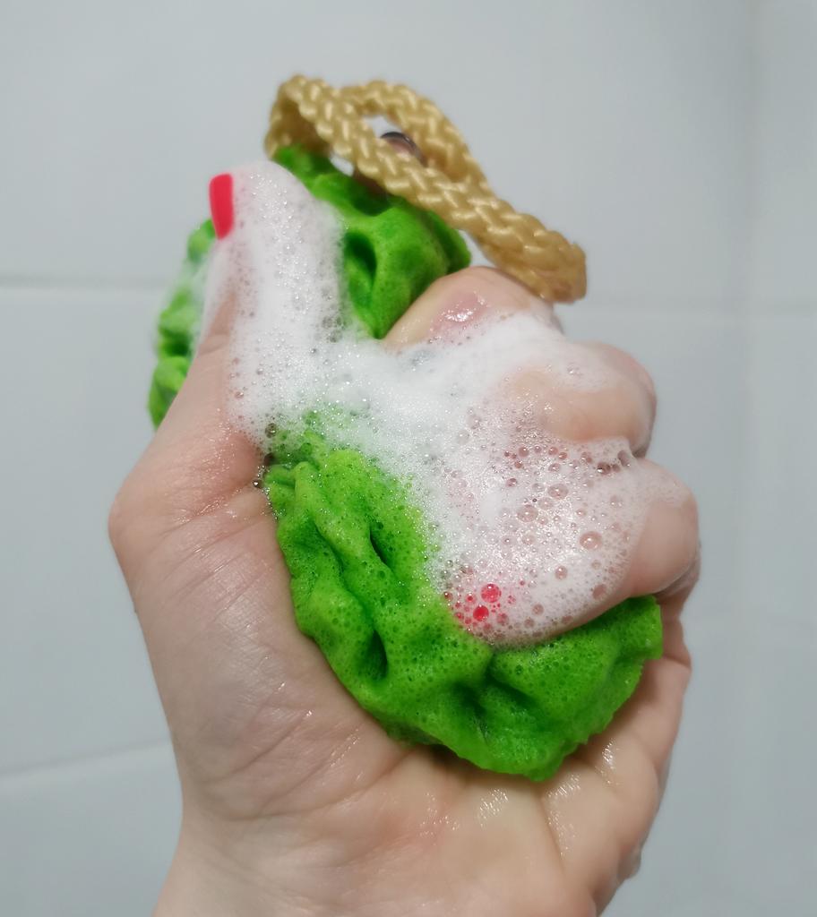 Ещё одна такая же мочалочка для душа 🎥🚿🛁🧼 Мне так понравилась первая, что я решила купить ещё одну. Только в другом цвете. На этот раз зелёная. В воде она становится размером побольше. А мыться ей одно удовольствие.Я влюбилась в эту мочалочку. Доставка 2 месяца. Купила за 158р