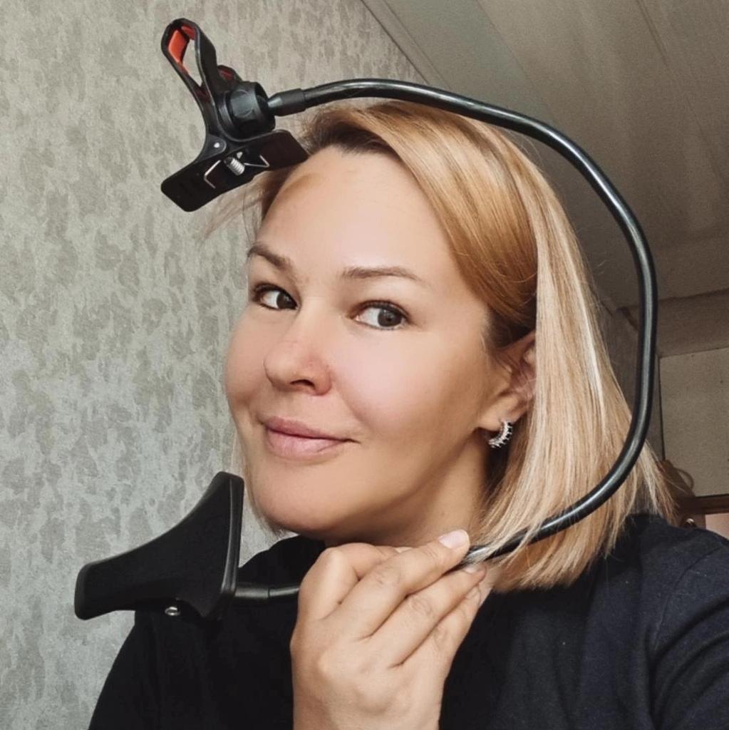 Универсальный гибкий держатель для смартфона предназначен для крепления к любым поверхностям при помощи зажима. Удобно с его помощью смотреть фильмы, лекции, новости, под касты из ютуб, даже если ваши руки в этот момент заняты, к примеру, при готовке. Кстати, сравнила цены на подобные штативы на Joom и других маркетплейсах, и на Джум самая выгодная 👌 Гибкая стойка достаточно жесткая, надо применять силу, чтобы согнуть под нужным углом. Обе прищепки: для стола и для смартфона легко крепятся. Телефон у меня достаточно тяжёлый, боялась, что не удержит. Но я ошиблась. Очень удобен для просмотра фильмов. Не стоит только вытягивать держатель в прямую линию, для устойчивости конструкции гибкую часть держателя стоит выгнуть в виде загогулины, змейки или пружины. Доставка около 1,5 месяцев с отслеживаемым треком в составе сборной посылки. Если вам интересны реальные обзоры и актуальные подборки лучших товаров- ставьте 💗 и подписывайтесь, чтобы не пропустить новые публикации 🤗