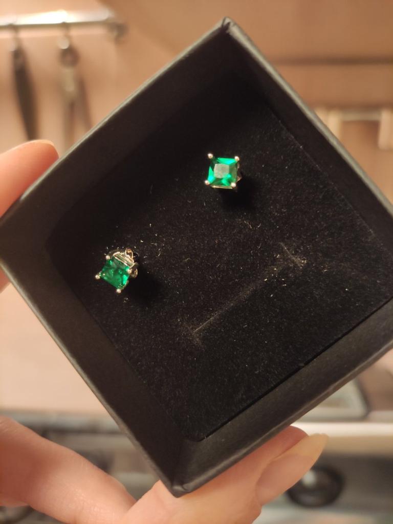 Серии гвоздики с камушками 🌿 Очень красивые миниатюрные серебряные серьги, стоит проба 925, продавец указал что, внутри каждой камень изумруд 🌷 Размер отличный, ни маленькие, ни большие 👍 Хорошо застягиваются и смотрятся на ушках) Застежка, как и серьги, прочная и качественно аккуратно сделана. Продавец очень хорошо упаковал посылку 😍 Серьги лежали в красивой чёрной коробочке и каждая отдельно в прозрачном пакете) Для подарка вообще отлично подходят 🙌 Они очень удобные, милые и прекрасно выделяются, несмотря на небольшой размер) Мне очень понравились эти серьги, благодаря своей легкости и удобству можно носить их хоть каждый день и не снимать 🥰🤩 Спасибо продавцу за прекрасный товар, отличного качества и быструю доставку 🌺 Завтра добавлю ещё больше фотографий и покажу их на себе ☺😍