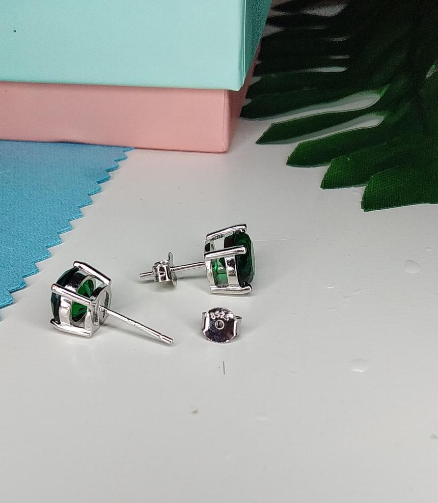 Серьги-гвоздики из 925 стерлингового серебра с изумрудным камнем