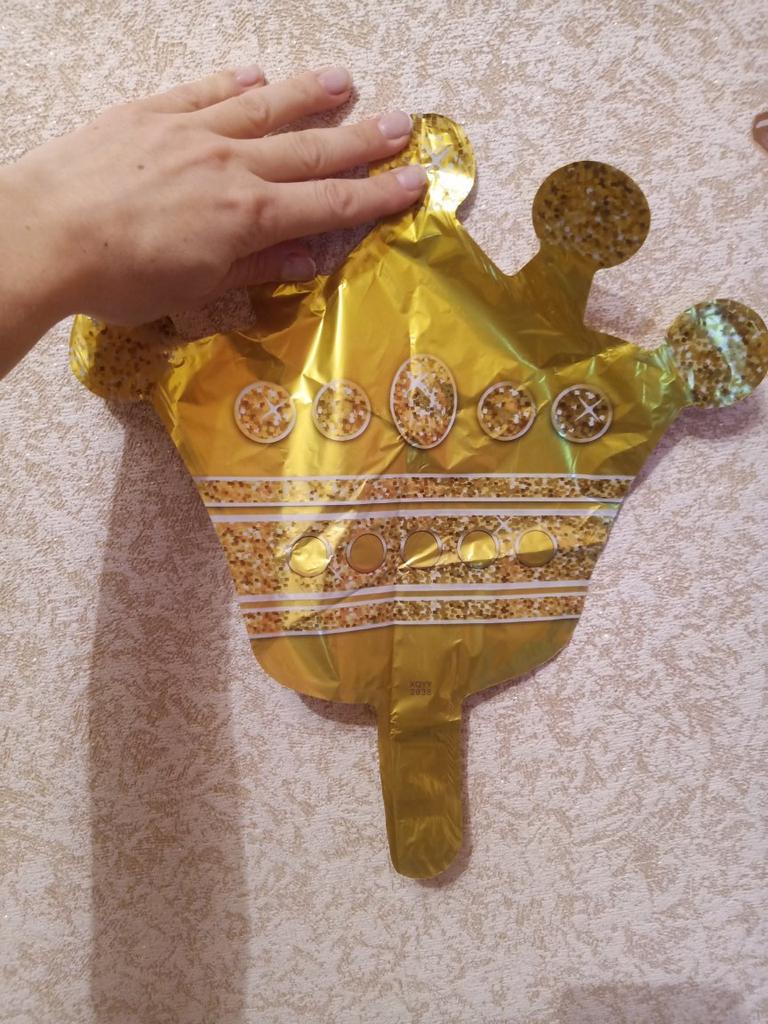 Шарик пришёл хорошо упакованный. По факту два шарика,сама единичка и корона.По тугоумию долго разбиралась как их надувать.Чуть не отрезала самое главное,липкую ленту,которая не даёт воздуху выходить из шарика. В высоту 60 см.Очень удобная вещь и не надо завязывать. Уже два дня шарик надутый лежит и не сдувается. Продавца и Джум рекомендую.