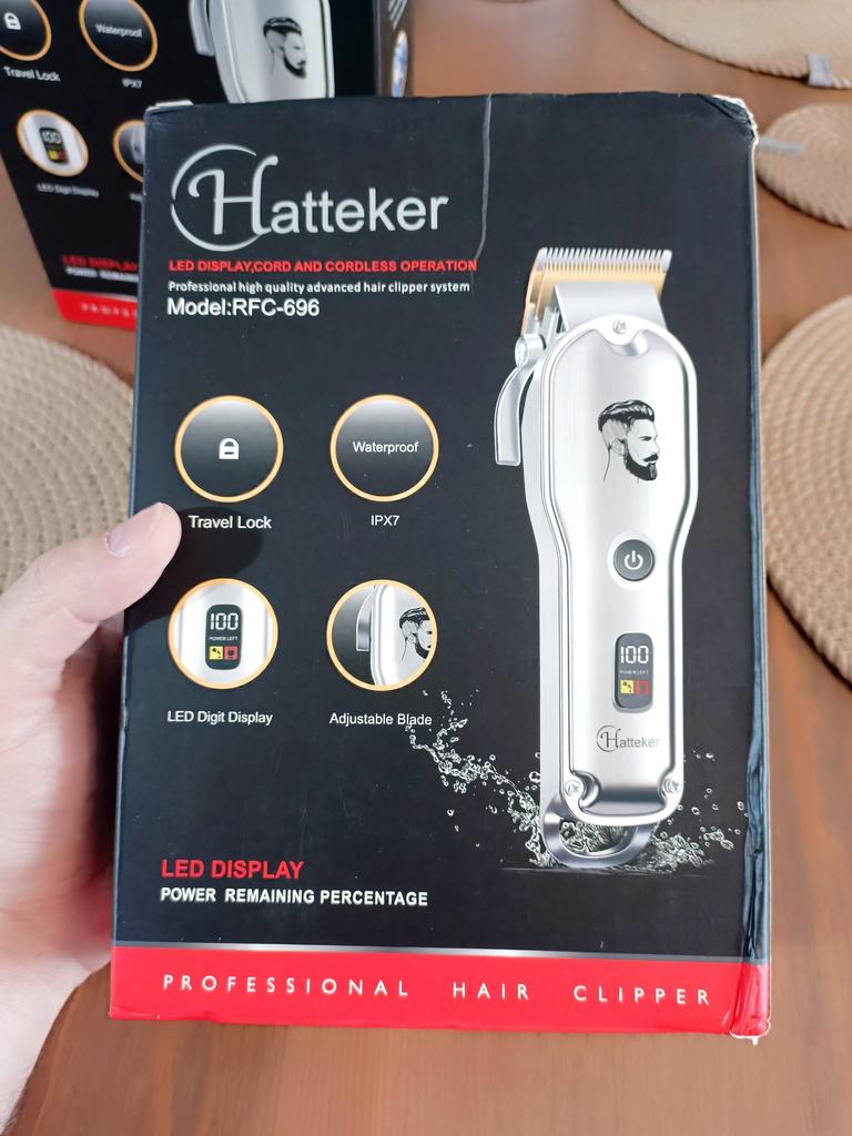 👨🦱👩🦱 ДВЕ КЛАССНЫХ МАШИНКИ ОТ HATTEKER ДЛЯ СТРИЖКИ ВОЛОС, С LED-ДИСПЛЕЕМ 💯👍 🙋♂ Снова заказал сразу две классных, удобных и шустрых машинки от известного бренда HATTEKER - для стрижки волос, с кучей аксессуаров. Я уже неоднократно заказывал на Joom именно эти машинки для стрижки - и для себя, и на подарки своим близким. Брал и под заказ. Такие машинки - это мощные, профессиональные аппараты от известной торговой марки. Работают безупречно! 💁♂ Итак, эти два экземпляра я взял для знакомых мастеров из салона красоты - одна уже пользуется, рекомендовала своим коллегам. Доставка 25 дней, трек полностью отслеживался. Дефектов, заводского брака или механических повреждений нет. Я уже наработал хороший практический опыт с точно таким аппаратом. Расскажу о многочисленных плюсах: 👍 Очень красивая коробка из матового картона, вся информация на коробке строго на английском языке. Фирма! Коробка абсолютно целая и невредимая. 👍 Богатая комплектация: 10 насадок разной длины, из разноцветного пластика - очень хорошая идея, чтобы быстро понять, какую использовать; накидка, как у парикмахеров и барберов; инструкция на шести (!) языках (русского нет, к сожалению); удобная расчёска; щёточка для очистки машинки; зарядное устройство. 👍 Дизайн просто космос! Очень красивая машинка: форма, цвет, нанесённые рисунок и надписи - всё говорит о том, что производитель очень тщательно и серьёзно подходит к производству своих изделий. Тут только из-за дизайна можно купить. Выглядит машинка дорого. И ещё она очень эргономичная - ложится в руку идеально. 👍 Качество сборки безупречное! Все детали хорошо подогнаны друг к другу, нигде никакого люфта или дребезжания. Кроме того, машинка в меру тяжёленькая. Пять баллов. 👍 Работает аппарат очень быстро и качественно. Стрижёт, не цепляя, не закусывая и не дёргая волосы, чисто и ровно. Благодаря десятку разных насадок можно делать любые стрижки, или придавать бороде любую форму. Зачёт! 👍 Ёмкий аккумулятор, который обеспечивает долгую автономную работу машинки - до 5 часов (если делать перерывы, без них три часа). Плюс индикатор заряда батареи. 👍 Хорошая влагозащита, уровень IPX7. 👍 У машинки хорошая мощность - 8W, то есть её можно смело использовать не только для домашней стрижки, но и для работы в салоне красоты или барбершопе. 👍 Ну и цена, конечно. Профессиональный аппарат для барбера или стилиста-парикмахера стоит в специализированных магазинах в несколько раз дороже, это факт. Здесь же всего 2,5 тысячи рублей (если использовать промокоды), очень приятная цена. А завтра на распродаже значительно дешевле! 💁♂ Однозначно рекомендую всем эту классную машинку для стрижки от HATTEKER - шуструю, надёжную и недорогую.