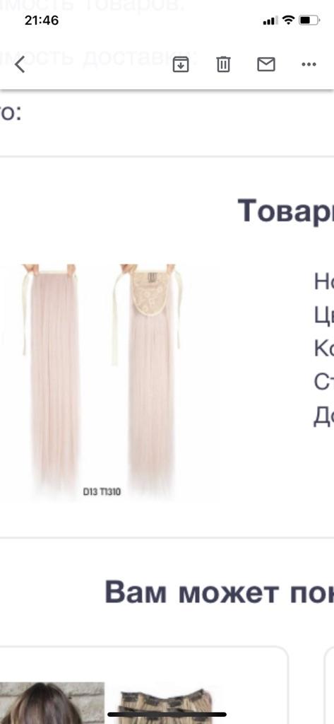 Получила заказ,ждала 3 недели,как и говорили примерное время доставки. Волосы красивые, но немного путаются и тяжеловаты немного,но в целом довольна) Спасибо