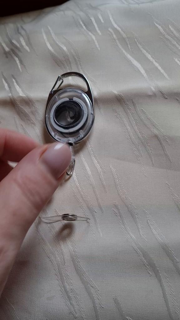Очень удобный держатель для бейджа. Маленький, лёгкий и если нужно можно вытянуть в длину .