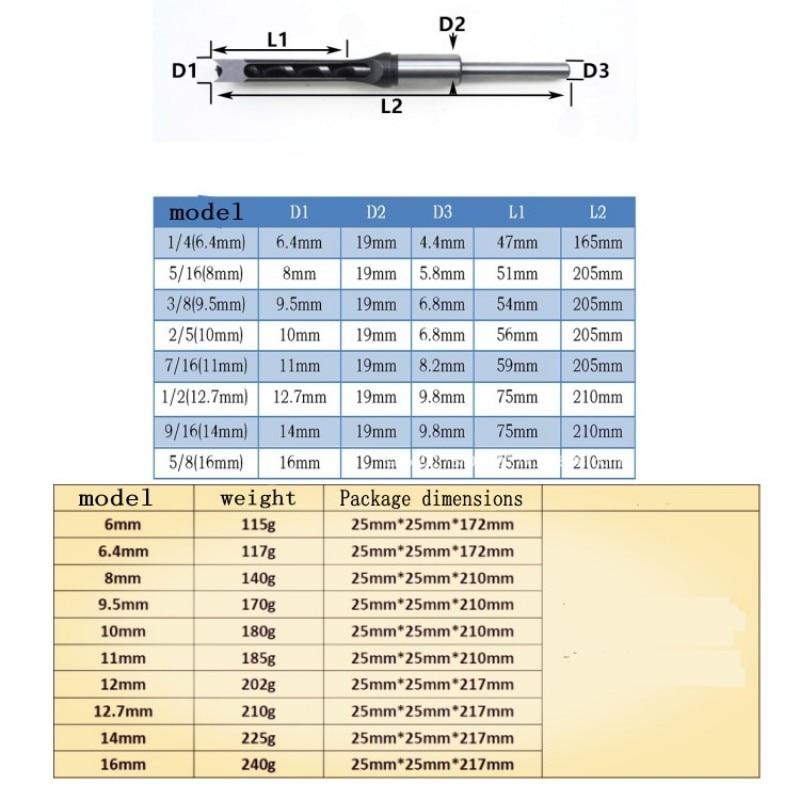 6.4/8/9.5/12.7/14/16 мм спиральные сверла набор инструментов для деревообработки набор квадратных сверл долбёжных долот набор сверл с квадратным отверстием удлиненная пила