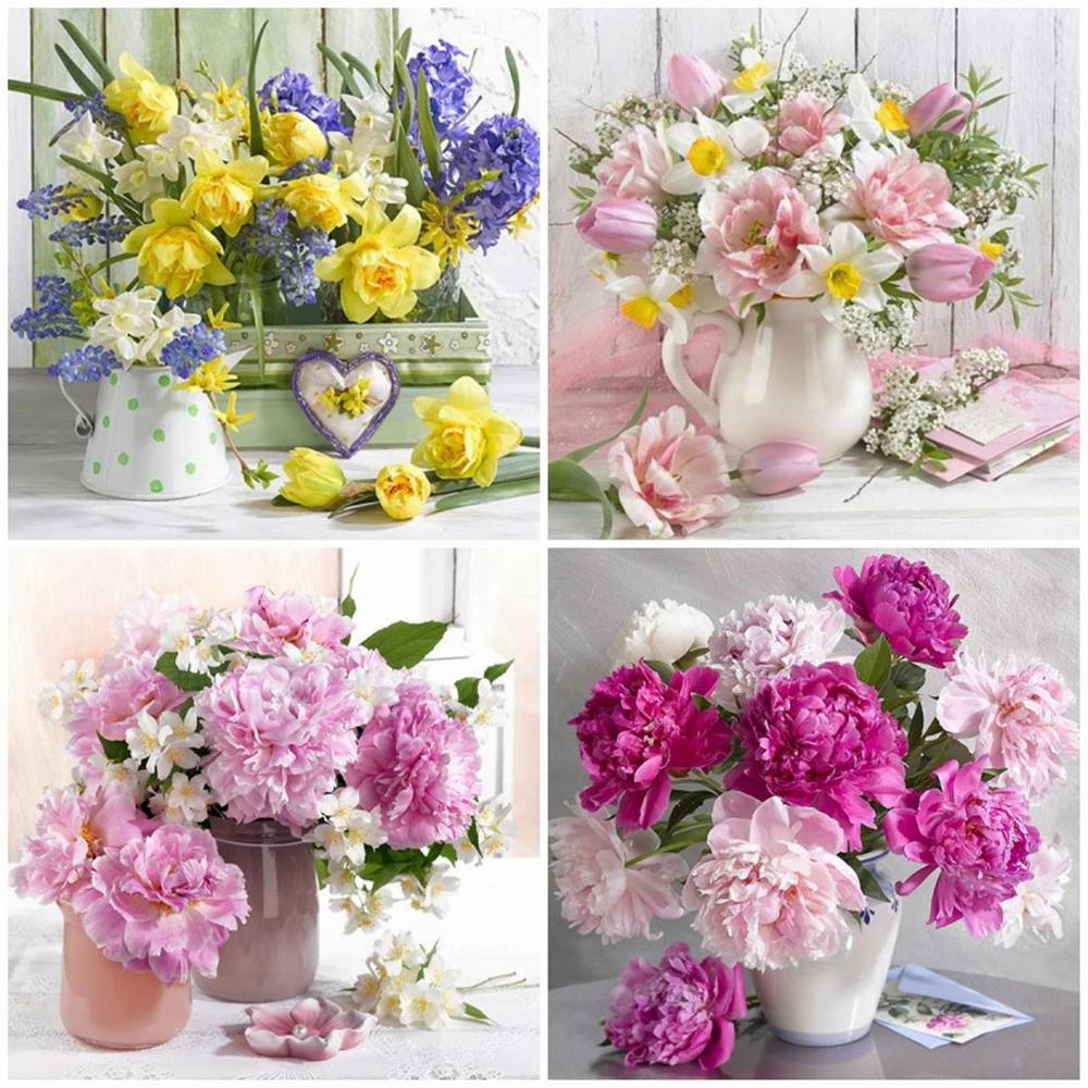 50X50CM Алмазная картина Ваза Цветы Вышивка крестом 5D Diy Домашнее украшение Алмазная мозаика Гвоздики Наклейки на стену — купить товар онлайн с бесплатной доставкой по всему миру!
