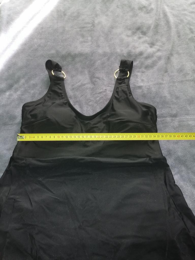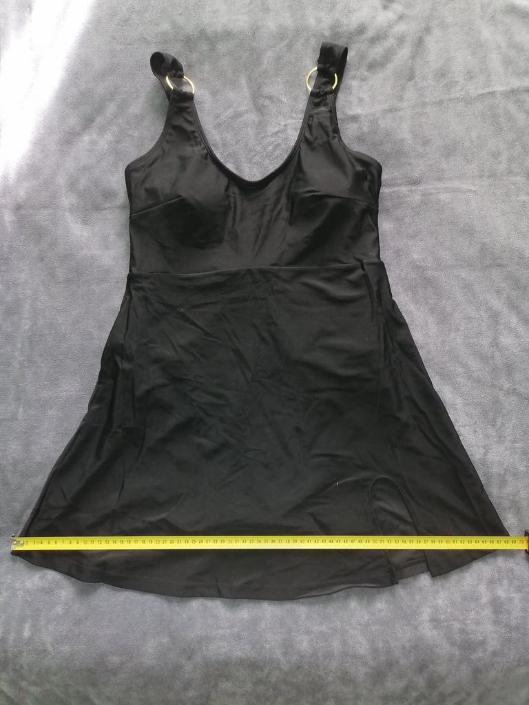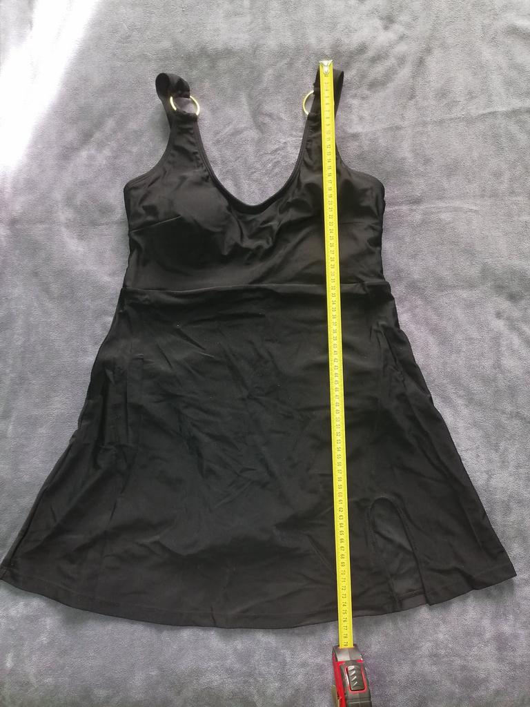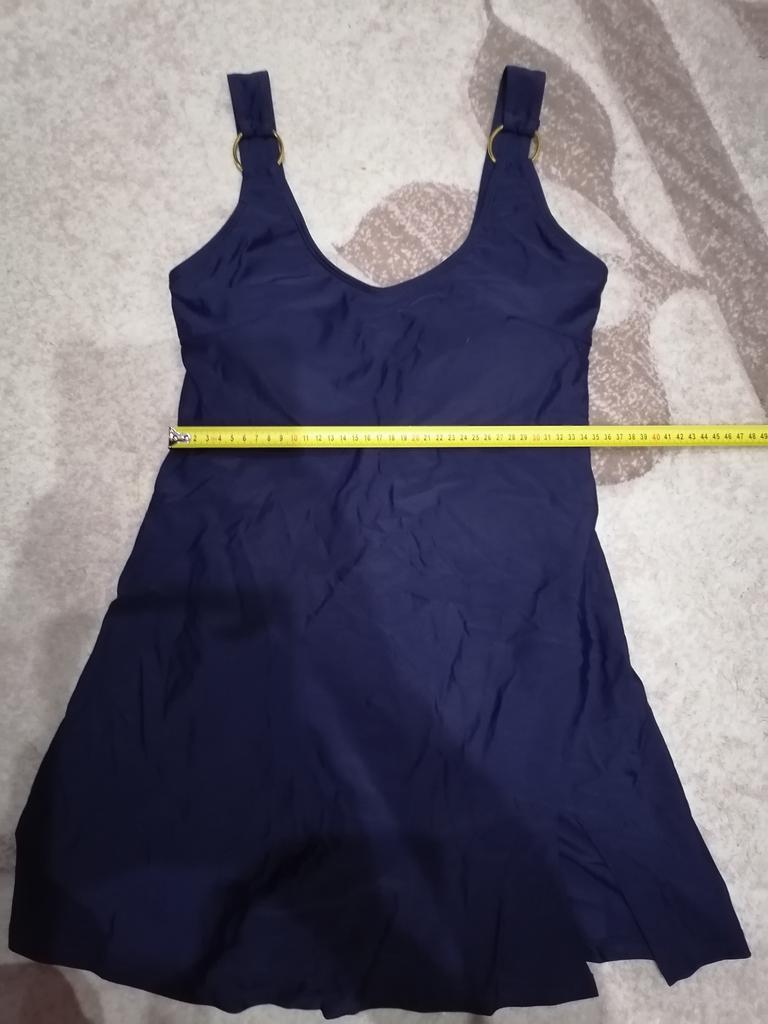 Этот купальник-платье, шедевр! Потрясающе красивое и стильное!!! Качество купальника безупречное. Ткань плотная, сам купальник с подкладом. Декор из золотых колечек придаёт эксклюзивность купальнику-платью! Очень комфортен и приятен к телу. Размер L на 48 чётко и без изъян!!! Всё замеры на фото. Купальник скрывает абсолютно все недостатки и подчёркивает достоинства фигуры. Однозначно рекомендую! Буду заказывать другой расцветки! Спасибо продавцу.