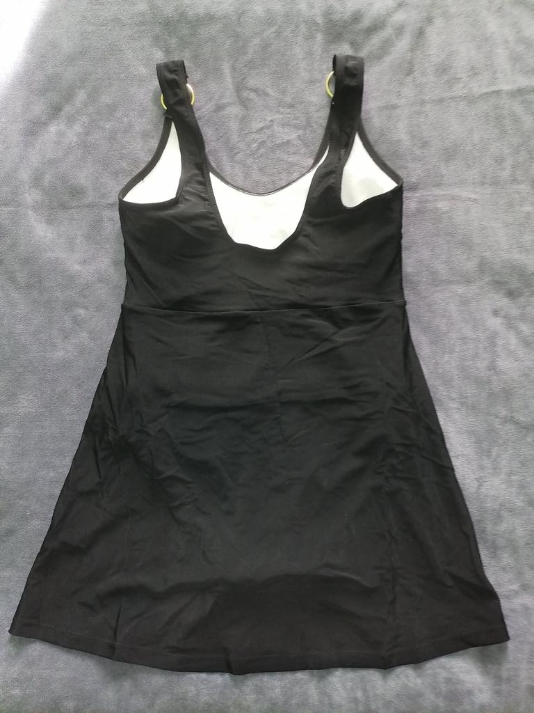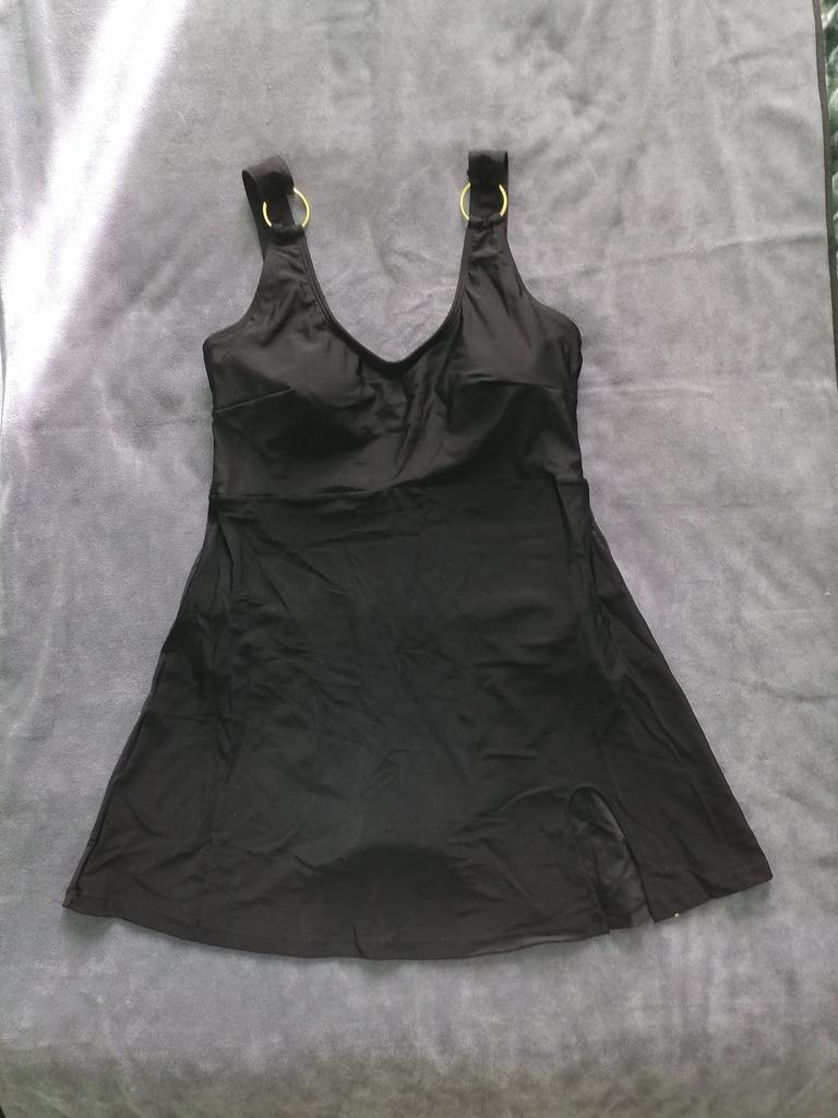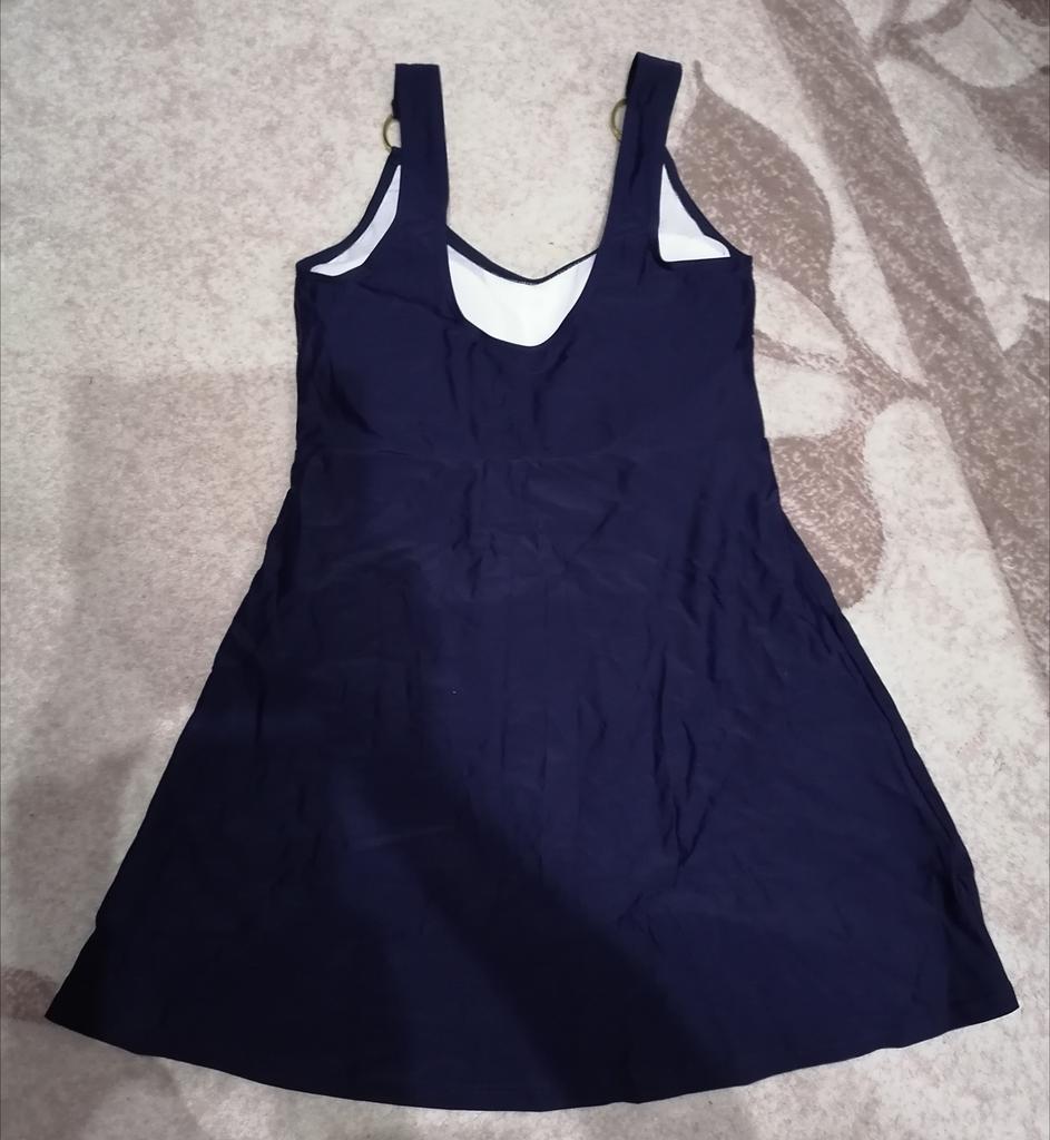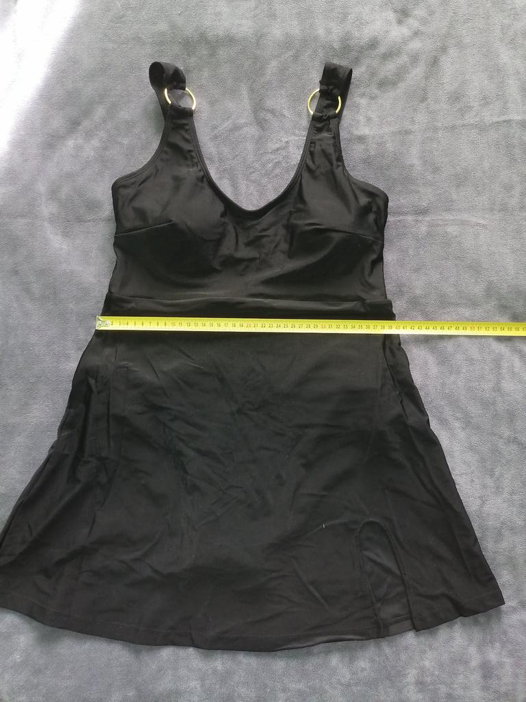 Этот купальник-платье, шедевр! Потрясающе красивое и стильное!!! Качество купальника безупречное. Ткань плотная, сам купальник с подкладом. Декор из золотых колечек придаёт эксклюзивность купальнику-платью! Очень комфортен и приятен к телу. Размер L на 48 чётко и без изъян!!! Всё замеры на фото. Купальник скрывает абсолютно все недостатки и подчёркивает достоинства фигуры. Однозначно рекомендую! Буду заказывать другой расцветки! Спасибо продавцу.