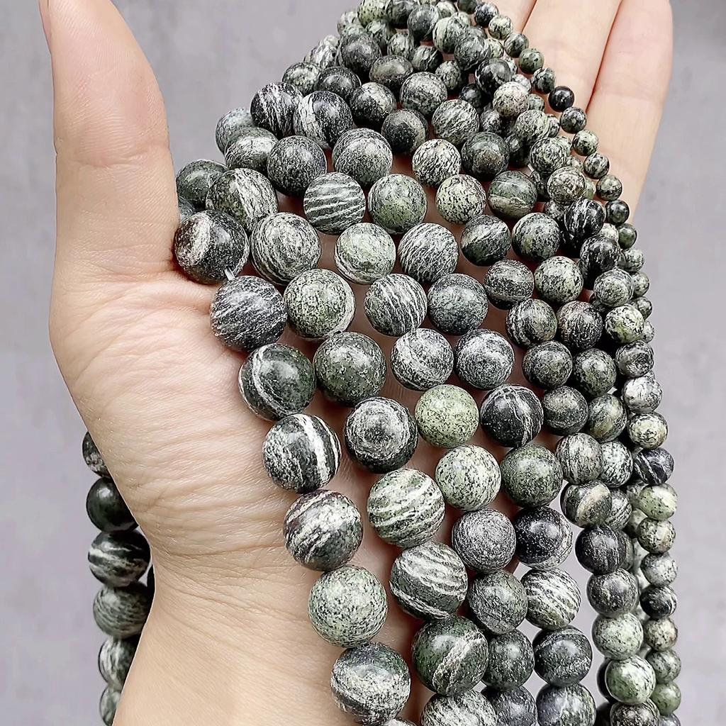 Круглые бусины из натурального камня, зеленая яшма под зебру, 15 дюймов, нить 4, 6, 8, 10, 12 мм, размер на выбор для изготовления ювелирных изделий