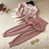 Модный женский трикотажный костюм с принтом сердец : свитер с коротким рукавом и брюки на шнурке в поясе — купить товар онлайн с бесплатной доставкой до всему миру!