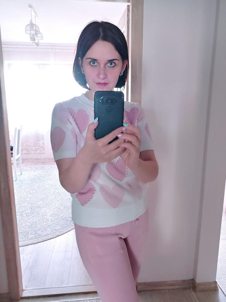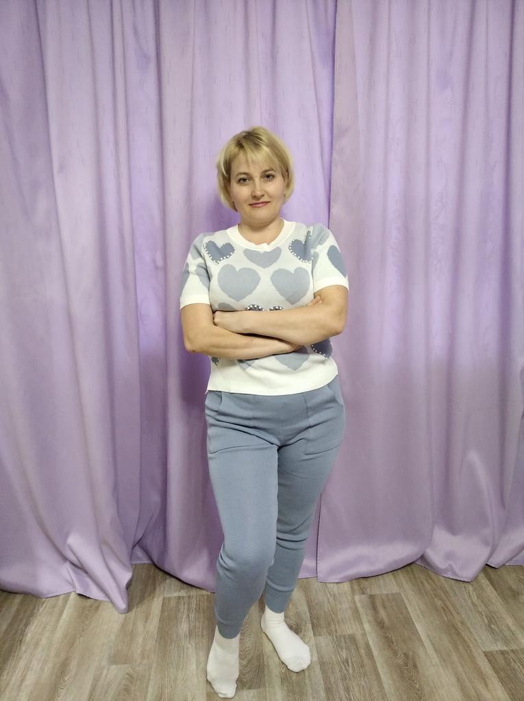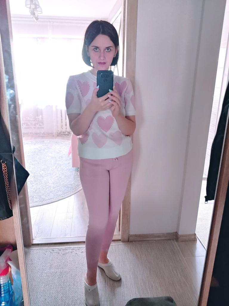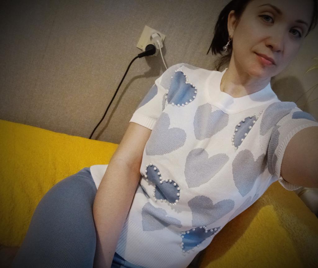 Летний спортивный костюм в нежных оттенках... У меня в голубом цвете... Решила приобрести себе тоже костюмчик, хоть спорт и я - не друзья... Трикотаж тоненький, акриловый... Свои параметры 100-77-100 свободно впихнула в этот один размер....Правда, кофточка коротковата для меня (комфортнее чувствую себя, когда пятая точка прикрыта🤪) Штанишки укороченные, на 155 см длина только-только... Очень понравился костюм своим оформлением в виде сердечек с бусинами... Правда, после пару раз телодвижений на полу штанишки в коленях растянулись🤔🥴... Думаю, можно собрать разные варианты в одежде с кофточкой...