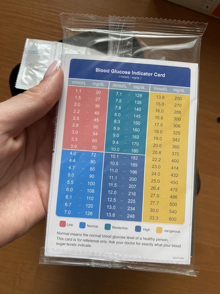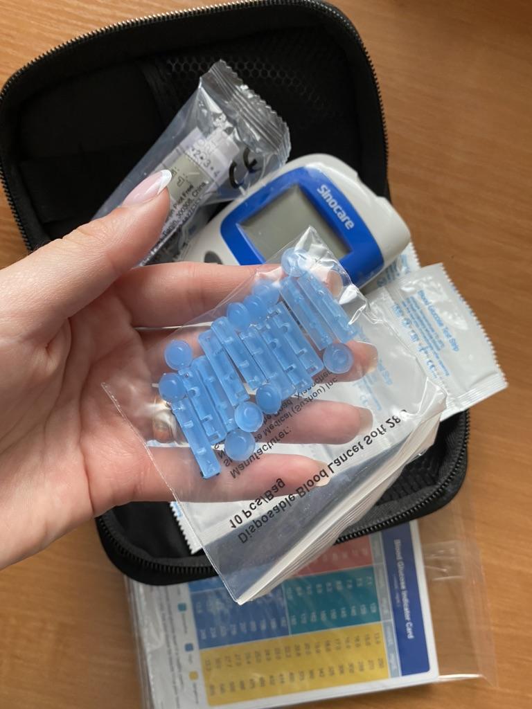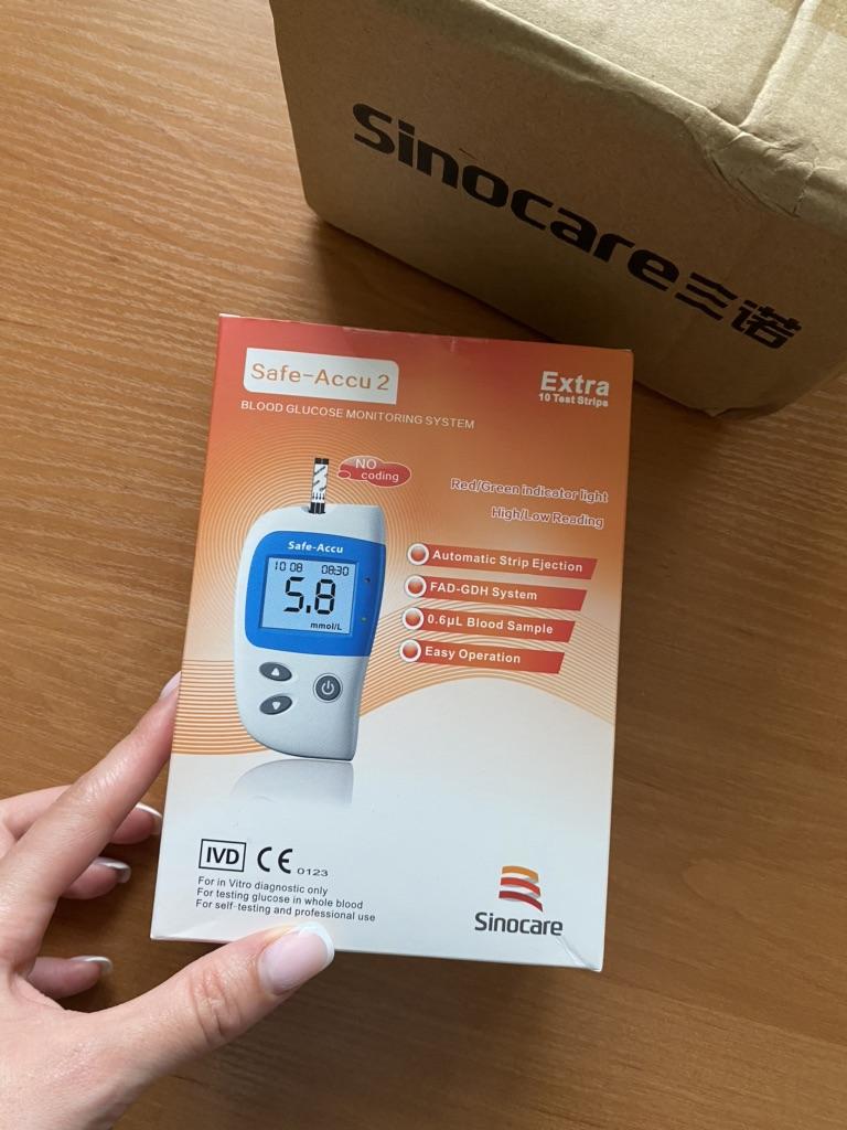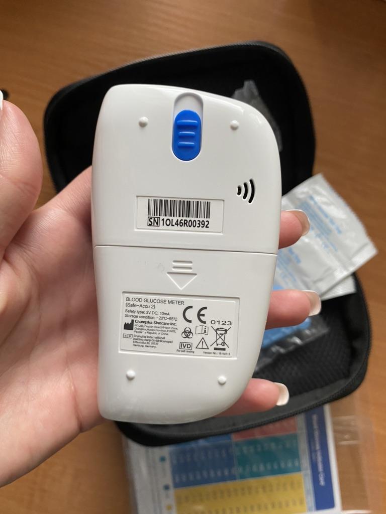 Глюкометр Safe-Accu 2 был куплен для мамы. У нее диабет 2 типа уже 5лет. Она подбирала его исходя из идеи наименьшая цена на глюкометр и расходники и хорошее качество. В наших аптеках цены на глюкометры и расходники намного выше. Глюкометр пришел в целлости и сохранности. Упакован был достаточно добротно. Срок годности полосок и ланцетов до 04.10.2023г. При первом пользовании глюкометр надо настроить. Инструкция на английском и поэтому настраивать пришлось мне, но это оказалось простым минутным делом. Несмотря на то, что инструкция на английском, все очень ясно и доступно расписано в картинках: и как настроить, и как пользоваться при обычном измерении, и как просмотреть результаты последних 200 тестов. Диапазон измерения широкий 1.1-33.3 mmol/L. Для того, кому неохота вести записи письменно или надо к эндокринологу, это очень удобно. Что понравилось маме - это то, что при пользовании полосками из новой упаковки не надо вставлять дополнительный чип, как это бывает у других глюкометров и он достаточно прост в использовании. Удобно и то, что после использования полоски на задней стенке глюкометра есть специальная кнопка, которая предназначена для того, чтобы полоска самостоятельно вышла из гнезда (т.е. ее не надо вытаскивать вручную). Глюкометр работает от двух пальчиковых батареек. Готов к замеру как только новая полоска вставлена в гнездо. Как только полоску удалили, глюкометр автоматически отключается. За точность трудно сказать тк еще не было возможности сверить с результатом лаборатории. Маме глюкометр пришелся очень кстати т.к. она откорректировала схему приема лекарств исходя из результатов. Глюкометр и ручка для проколов упакованы в хороший твердый футляр-сумку из качественного дерматина размером 9,5см×15,5см×3,5см. Здесь можно разместить и баночку с полосками для тестов. Мама ее укладывает над глюкометром. Для ланцетов можно задействовать небольшой закрывающийся герметично кулечек. В него насыпаешь нужное количество ланцетов. Для ручки есть специальное отделение. Все компактно и надежно. Но все это после того как использовали полоски и ланцеты, которые пришли в футляре с глюкометром. Всем здоровья!