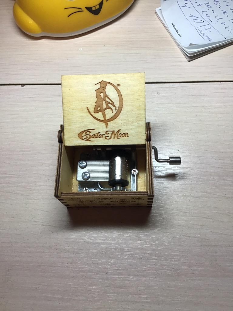 Получила шкатулку. Она из дерева и соответствует фотографии. Звук волшебный, прямо как в аниме был эпизод с таким звуком. По темпу немного разнится с оригиналом, и все таки товар замечательный. Звучит отлично, исполнение отличное. Для фаната этот предмет станет ценностью. Рекомендую к покупке. Видео со звуком, издаваемым шкатулкой