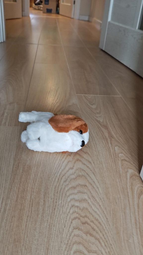 Одна лапка криво идёт, из-за этого собачка немного двигается и всё время падает. Это либо брак, либо плохая упаковка. Очень разочарованы, потому что ребёнок ждал именно двигающуюся нормально игрушку.