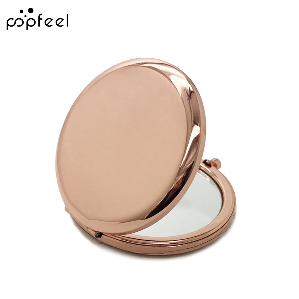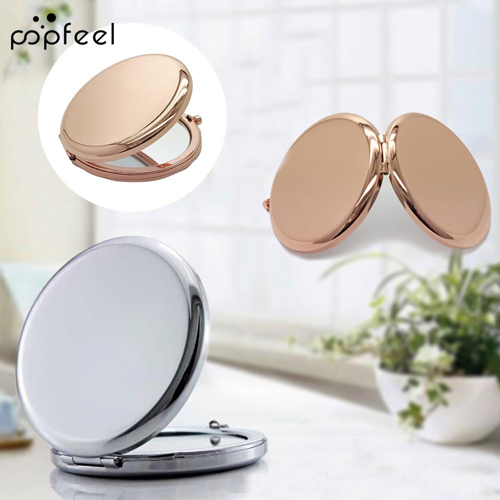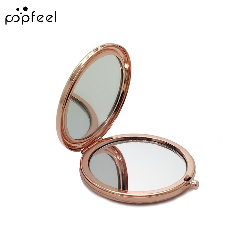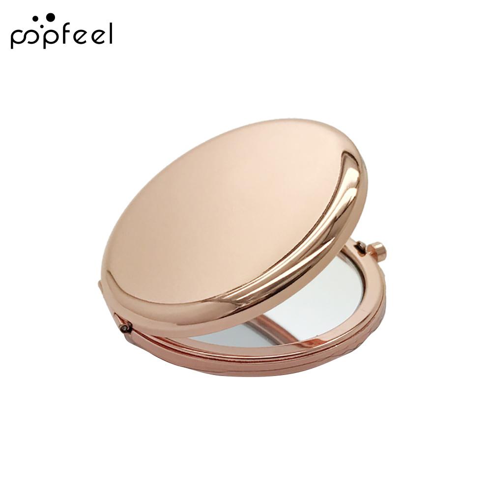 Popfeel Двухстороннее выдвижное металлическое круглое карманное зеркало для макияжа