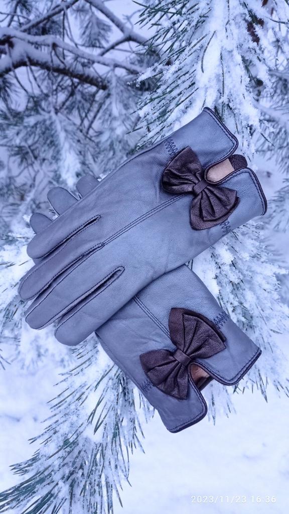🧤🍁❄Перчатки осенние или для тёплой южной зимы!!! 🧤Цвет серый с лёгким перламутром! Очаровательный бронзовый бантик, который , конечно же,украсил перчатки и придал особую изюминку, собственно, этим самым и привлёк моё внимание! 🧤Перчатки мягкие, на приятной плюшевой подкладке! Средней плотности! 🧤Пошиты из натуральной кожи овчины, достаточно, аккуратно, хотя и не "люкс" класса, но за бюджетную цену вполне прилично! Покупала за 750руб! 🧤На мою руку с ногтями размер L сел впритык! Сделала замеры ладони и приблизительно ладонь в обхвате составила 18,5см и ладонь по самому большому пальцу тоже 18,5! 🧤Пришли перчатки через полтора месяца, прилично упакованные ,в зип пакете! Вцелом покупка удачная❤