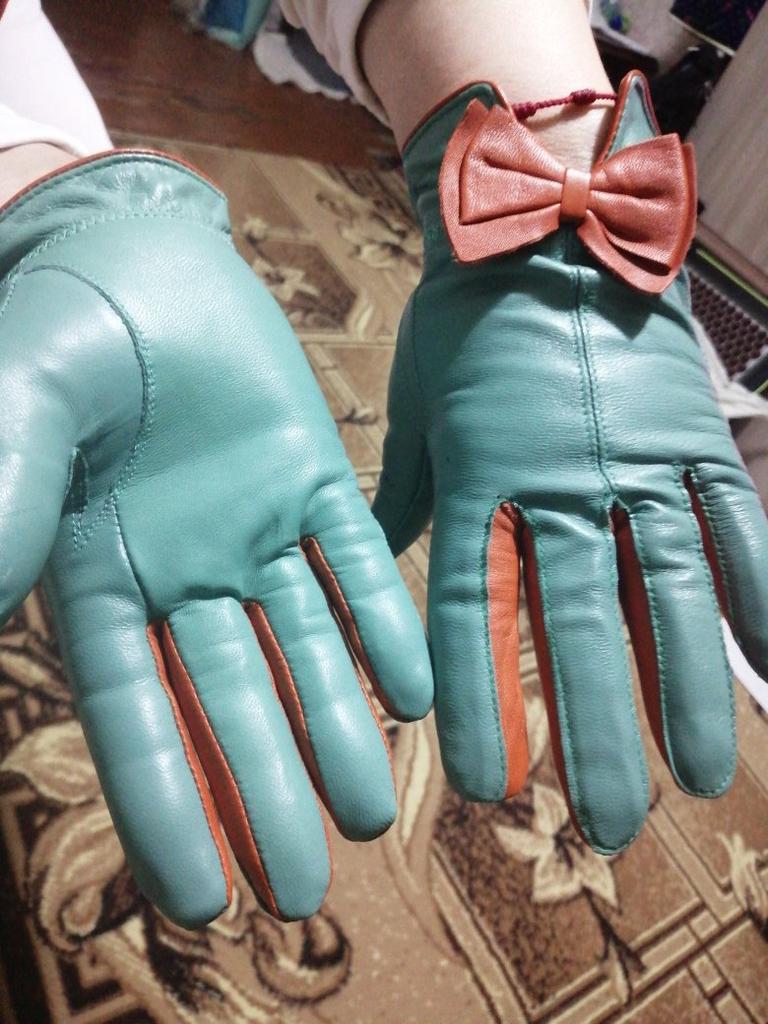 Перчатки - СУПЕР!!! Сшиты очень аккуратно, выглядят стильно. Слегка утеплённые, на осень-весну, демисезонные. Без сомнения кожаные. Не длинные, запястье почти не закрывают - такой фасон. Бантик из-под рукава весьма пикантно выглядывает ;-))) На моих длинных пальцах сидят плотно, не коротки. Частый дефект многих перчаток - неправильный шов у большого пальца, из-за чего перчатки в этом месте рвуться. В этих перчатках такого нет, всё правильно, все комфортно. Один маленький минус - несильный запах некоторой затхлости. Вероятно от долгого хранения на холодном складе. Проносила пару дней, запах стал заметно слабее. Думаю выветрится. Покупкой довольна, продавцу и JOOM большое спасибо.