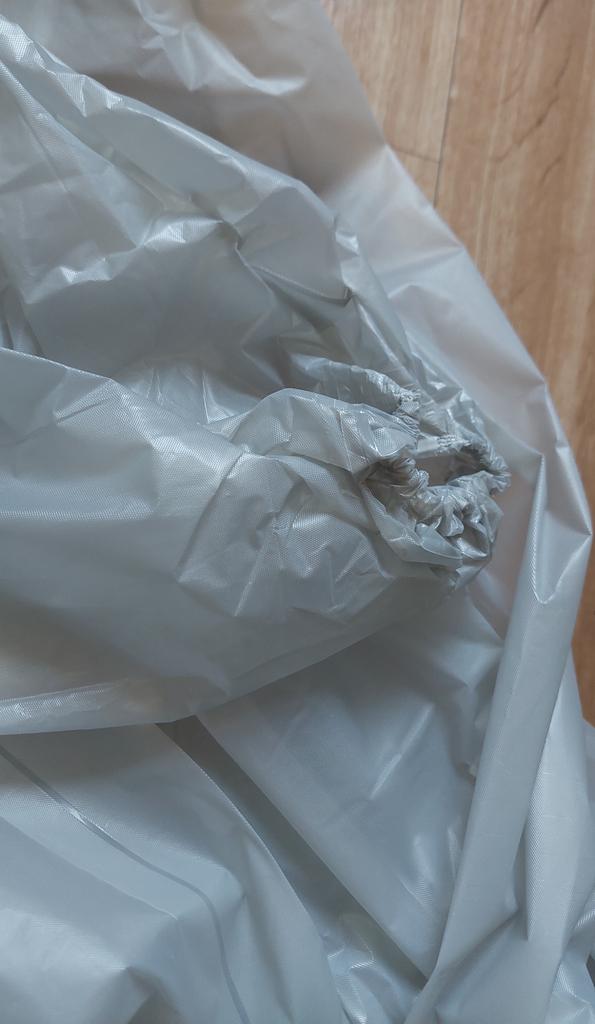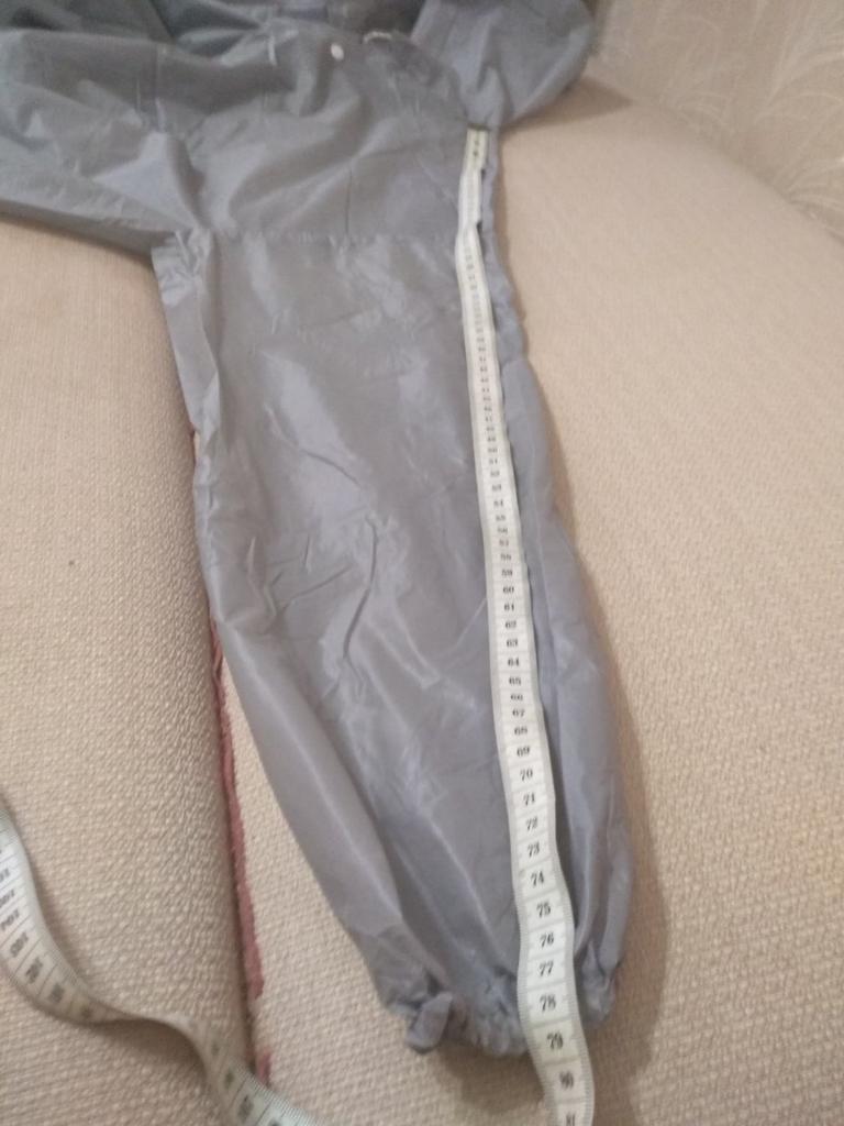 Плащик суперский. На рукаве резиночка, застежка- кнопки, материал плотный, не как в шариках плащи продают одноразовые. На мои параметры 106-90-108 как раз. Длина ниже колена сантиметров на 10-15 при моем росте 165. Может кому то пригодится. Закажу еще в другом цвете.
