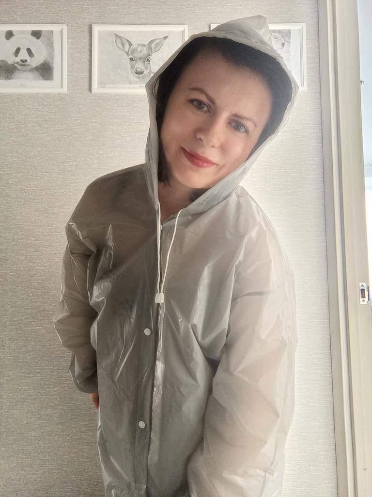 Дождевик. Взяла по акции 6+ за 1 рубль. Дождевик идёт в одном размере. По ширине подойдёт до 50-52 размера. Рукава на рост 163 с запасом, внизу фиксируется резинкой. По длине до середины икры. Застегивается на белые пластиковые кнопки. Капюшон в виде колпака регулируется завязками. Я взяла в сером цвете, у продавца есть и другие более яркие цвета. Товар и продавца рекомендую.