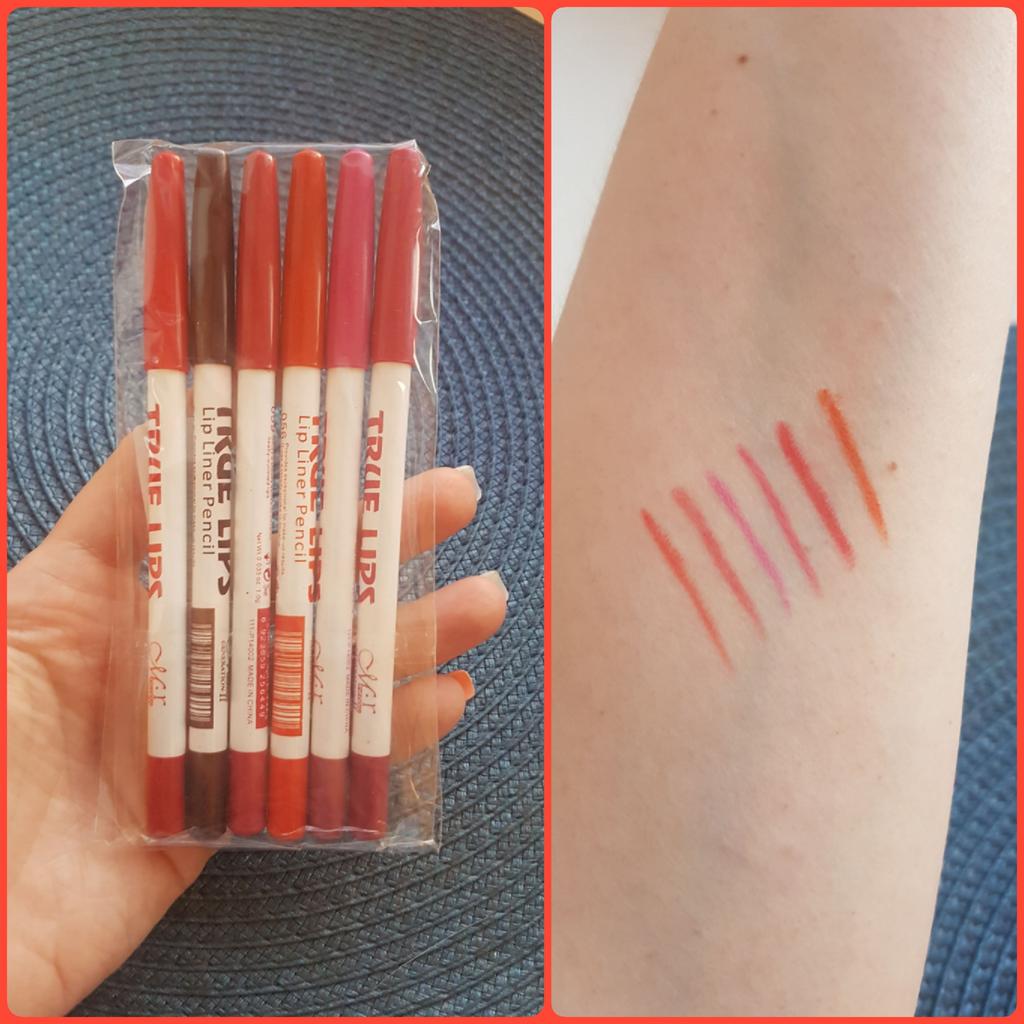 6 карандашей для губ за отличную цену💋 У меня сет 2, вполне можно подобрать ко многим помадам. Карандаши деревянные, крышечки пластиковые. Все цвета разные: морковный, красный, красно-оранжевый, два розовых ярких, фуксия. Яркость вполне можно регулировать нажимом и слоем карандаша, что очень удобно, т.к. подойдёт и для повседневного, и для вечернего макияжа Рисует мягко, удобно, не растекается. Не водостойкие, точатся хорошо, без запаха. Доставка 1,5 месяца.
