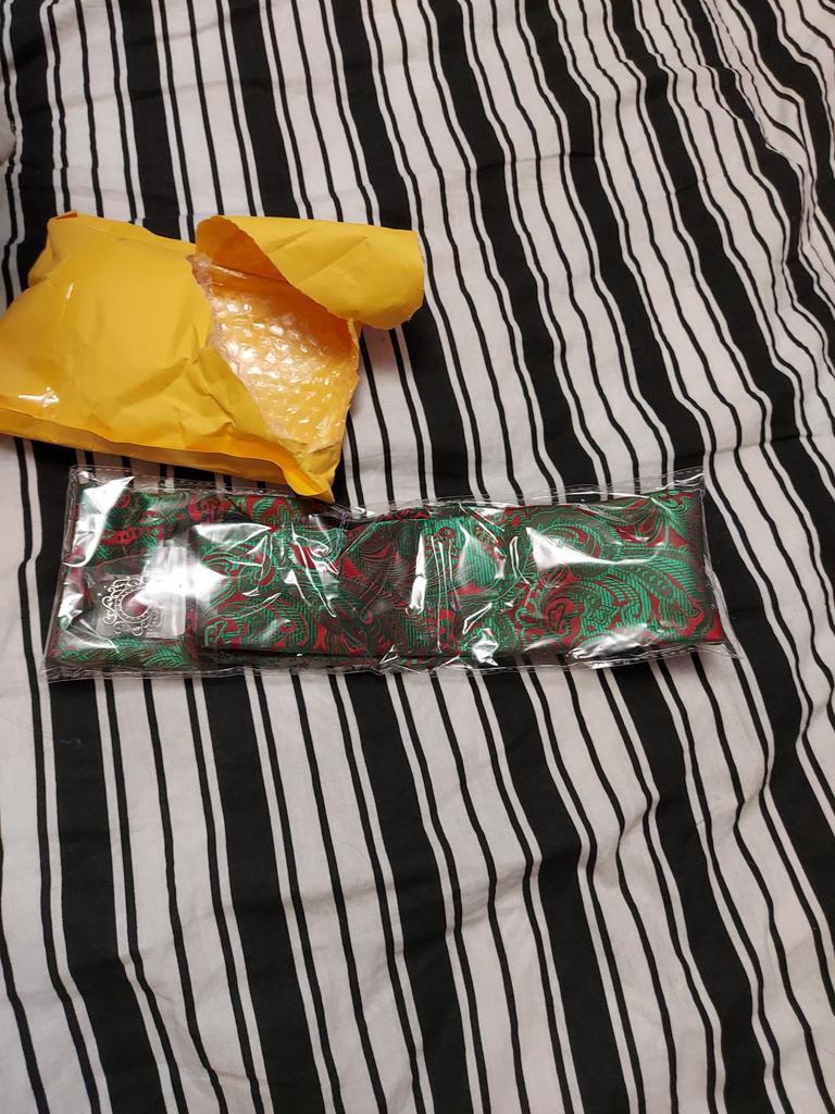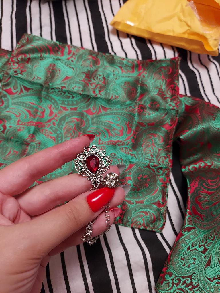 Шикарный комплект: галстук, платочек, запонки и булавка. На мой вкус, дешёвая булавка, к тому же с ярким красным стеклом , простит комплект. Я её пристроила на другую вещь. Большое спасибо всем. К покупке рекомендую.