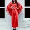 Женское сексуальное кружевное атласное кимоно, длинный халат, халат, нижнее белье, пижама с поясом, пижама