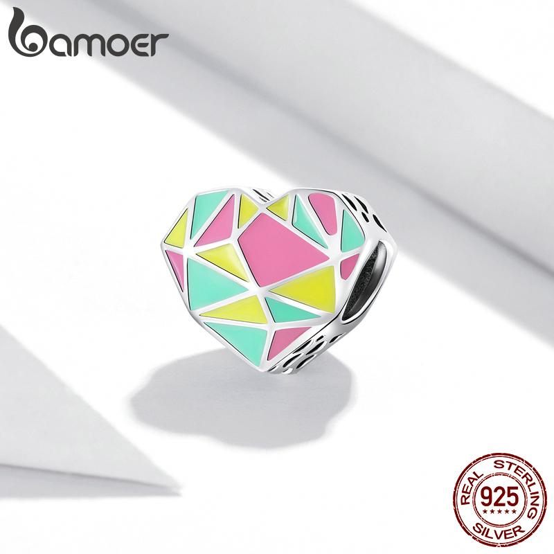 BAMOER из стерлингового серебра 925 пробы, красочные геометрические узоры, очаровательные бусины в форме сердца в форме сердца для оригинальных браслетов и ожерелья диаметром 3 мм