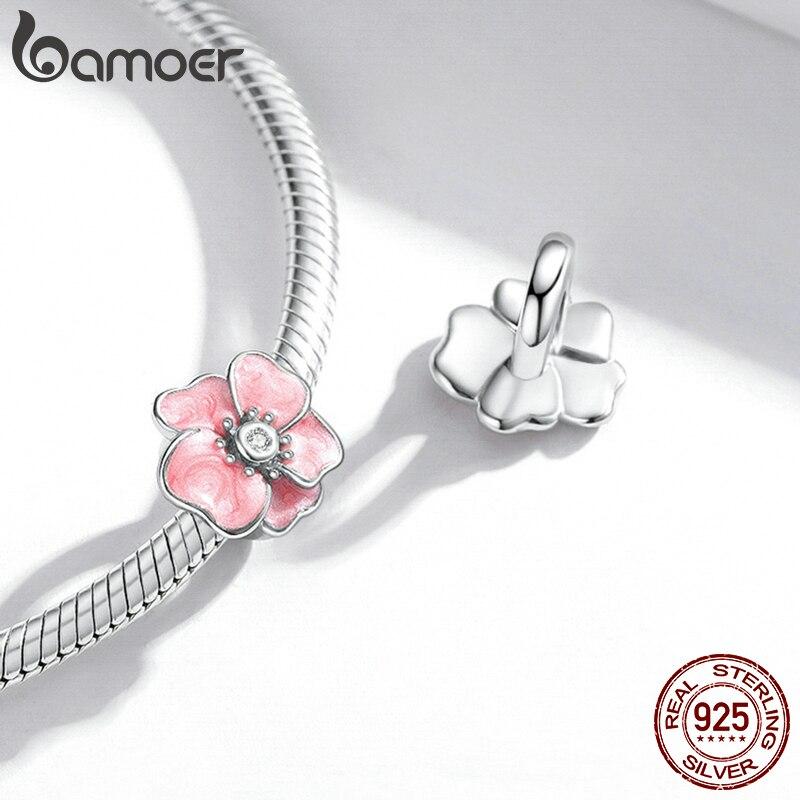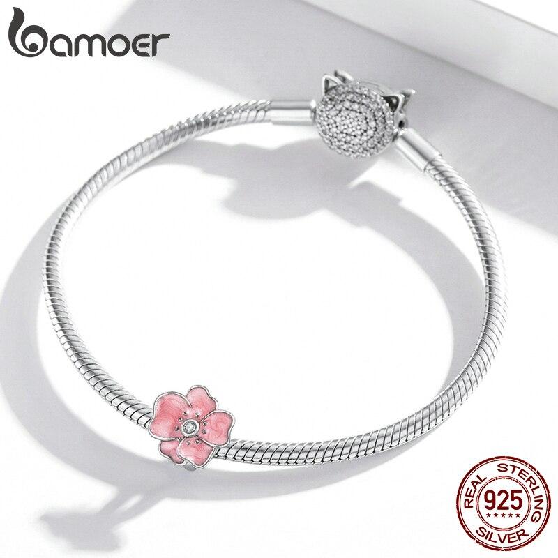BAMOER розовый цветок CZ металл стерлингового серебра 925 пробы Шарм-пробка бусина для женщин брендовый браслет и браслет DIY ювелирные изделия